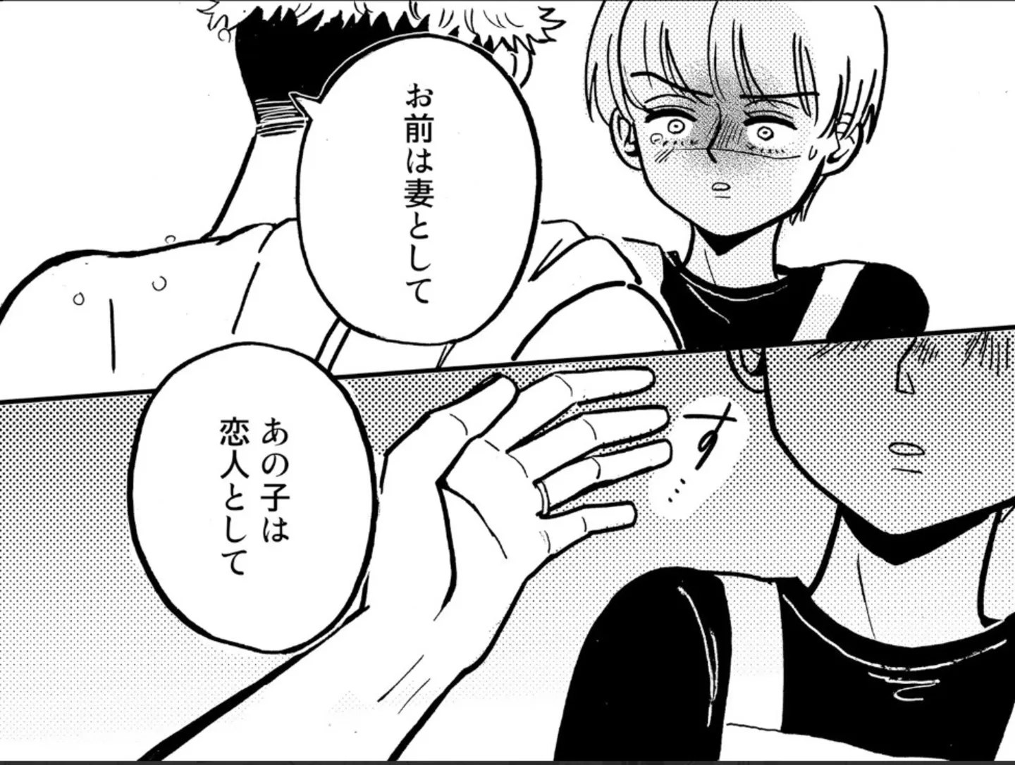 主人公・サナエは子どもを授かりたい一心で不妊治療に励む専業主婦。しかしある日、彼女は出張帰りの夫の荷物から、不貞行為を示す決定的な証拠を発見してしまう。感情のままに問い詰めると、夫は逆ギレし、驚愕の言葉を口にした。「お前は妻として、あの子は恋人として、それぞれ愛してるんだから……。俺を見守ってほしい」。