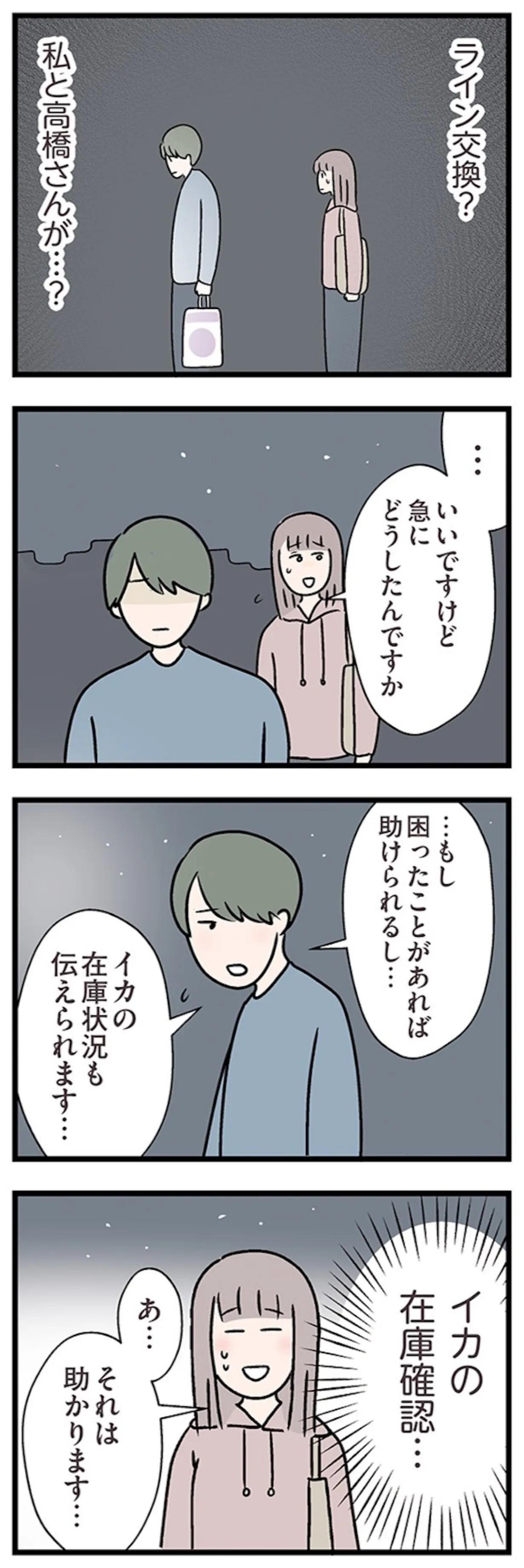 コンビニ店員と連絡先を交換! 独身と思われてるけど訂正したくない…/夫がいても誰かを好きになっていいですか? コンビニで見つけた私の恋⑩ マンガ 公開日:2026/2/14 この連載を最初から読む→ 第19話 この出会いを大切にしたい 本作品をAmazon(電子)で読む > 本作品をRenta!で読む > >> 次のページに続く « 1 2 3 4 > あわせて読みたい 【漫画】『夫がいても誰かを好きになっていいですか? コンビニで見つけた私の恋』を第1回から読む 【漫画】『大黒柱妻の日常 共働きワンオペ妻』を読む 【漫画】『きょうだい、だけどいや ケアをさせられたきょうだい児だった、けど』を読む 最新マンガと話題の書籍を無料で試し読み! 前の回 一覧 人気の連載 次の回 夫がいても誰かを好きになっていいですか? コンビニで見つけた私の恋【電子限定フルカラー版】 (コミックエッセイ) 試し読み *電子書籍ストアBOOK☆WALKERへ移動します 夫がいても誰かを好きになっていいですか? (コミックエッセイ) 試し読み *電子書籍ストアBOOK☆WALKERへ移動します 夫がいても誰かを好きになっていいですか? アヤの選択【電子限定フルカラー版】 (コミックエッセイ) 試し読み *電子書籍ストアBOOK☆WALKERへ移動します