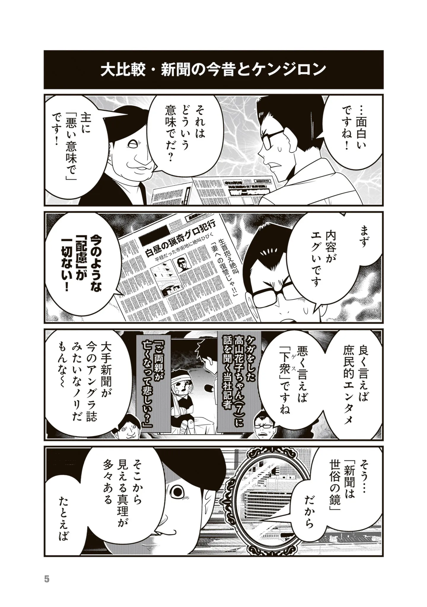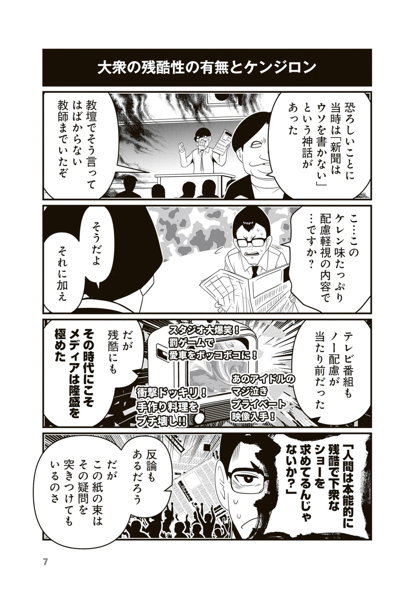 「新聞は世俗の鏡」昔と今の新聞を比較して、見えてくる人間の真理/反逆コメンテーターエンドウさん4㉜ マンガ 公開日:2026/1/24 この連載を最初から読む→ <第33回に続く> 本作品をAmazon(電子)で読む > 本作品をRenta!で読む > 本作品をebookjapanで読む > 本作品をBOOK☆WALKERで読む > « 1 2 あわせて読みたい 【漫画】『反逆コメンテーターエンドウさん(1~4巻)』を第1回から読む 【漫画】『放置子の面倒を見るのは誰ですか?』を読む 【漫画】『べつに友達じゃないけど』を読む 最新マンガと話題の書籍を無料で試し読み! 前の回 一覧 人気の連載 次の回 反逆コメンテーターエンドウさん (MFC) 試し読み *電子書籍ストアBOOK☆WALKERへ移動します 反逆コメンテーターエンドウさん 2 (MFC) 試し読み *電子書籍ストアBOOK☆WALKERへ移動します 反逆コメンテーターエンドウさん 3 (MFC) 試し読み *電子書籍ストアBOOK☆WALKERへ移動します 反逆コメンテーターエンドウさん 4 (MFC) 試し読み *電子書籍ストアBOOK☆WALKERへ移動します