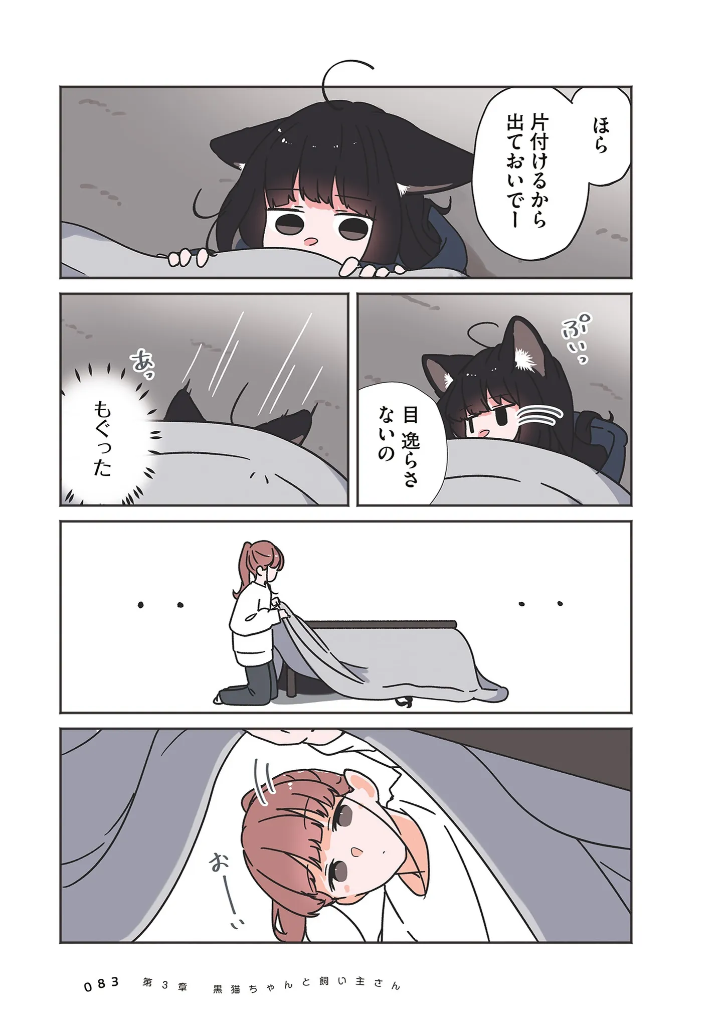 猫には構ってほしくない日もある。素直に諦めて、離れようとするけれど…/うちの黒猫、おんなのこ⑩ マンガ 公開日:2026/2/5 この連載を最初から読む→ <第11回に続く> 本作品をAmazon(電子)で読む > 本作品をRenta!で読む > 本作品をebookjapanで読む > 本作品をBOOK☆WALKERで読む > « 1 2 3 あわせて読みたい 【漫画】『うちの黒猫、おんなのこ きまぐれ姉妹のクロとマメ』を第1回から読む 【漫画】『きょうだい、だけどいや ケアをさせられたきょうだい児だった、けど』を読む 【漫画】『ねこに転生したおじさん』を読む 最新マンガと話題の書籍を無料で試し読み! 前の回 一覧 人気の連載 次の回 うちの黒猫、おんなのこ きまぐれ姉妹のクロとマメ (コミックエッセイ) 試し読み *電子書籍ストアBOOK☆WALKERへ移動します