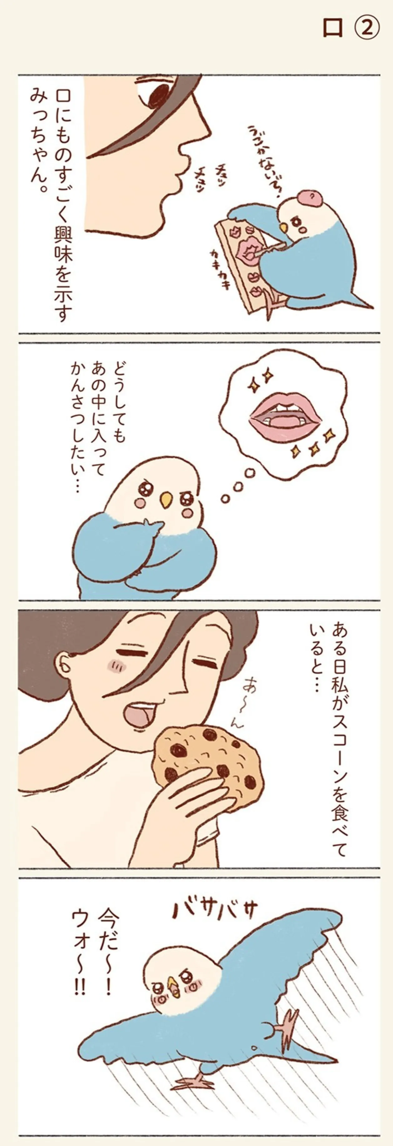 中に鳥がいると思っている? 鳴きまねをする飼い主の口に興味津々なインコの大胆行動/プジェ日記!⑥ マンガ 公開日:2026/1/29 この連載を最初から読む→ <第7回に続く> 本作品をAmazon(電子)で読む > 本作品をRenta!で読む > 本作品をebookjapanで読む > 本作品をBOOK☆WALKERで読む > « 1 2 3 あわせて読みたい 【漫画】『プジェ日記! 幸せを運ぶインコのみっちゃん』を第1回から読む 【漫画】『グランプリは私ですけど何か?~自己肯定モンスターのミスコン無双~』を読む 【漫画】『ねこようかい』を読む 最新マンガと話題の書籍を無料で試し読み! 前の回 一覧 人気の連載 次の回 プジェ日記! 幸せを運ぶインコのみっちゃん (コミックエッセイ) 試し読み *電子書籍ストアBOOK☆WALKERへ移動します