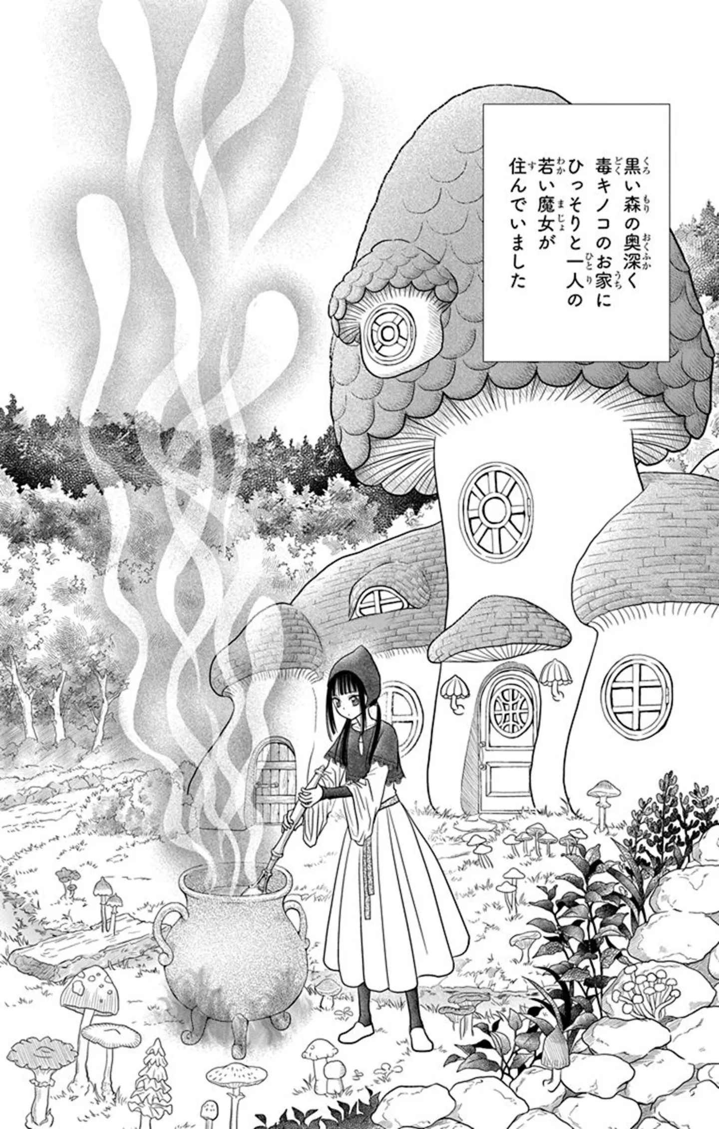 触れたり歩いたりしたところから毒きのこが生え、吐く息や皮膚には毒が混じるため、人々からは「シャンピニオン(※フランス語で「きのこ」の意)の魔女」と呼ばれ恐れられている黒魔女のルーナ。人間に直接触れられず、街から離れた黒い森で魔法生物たちと一緒に暮らしている。