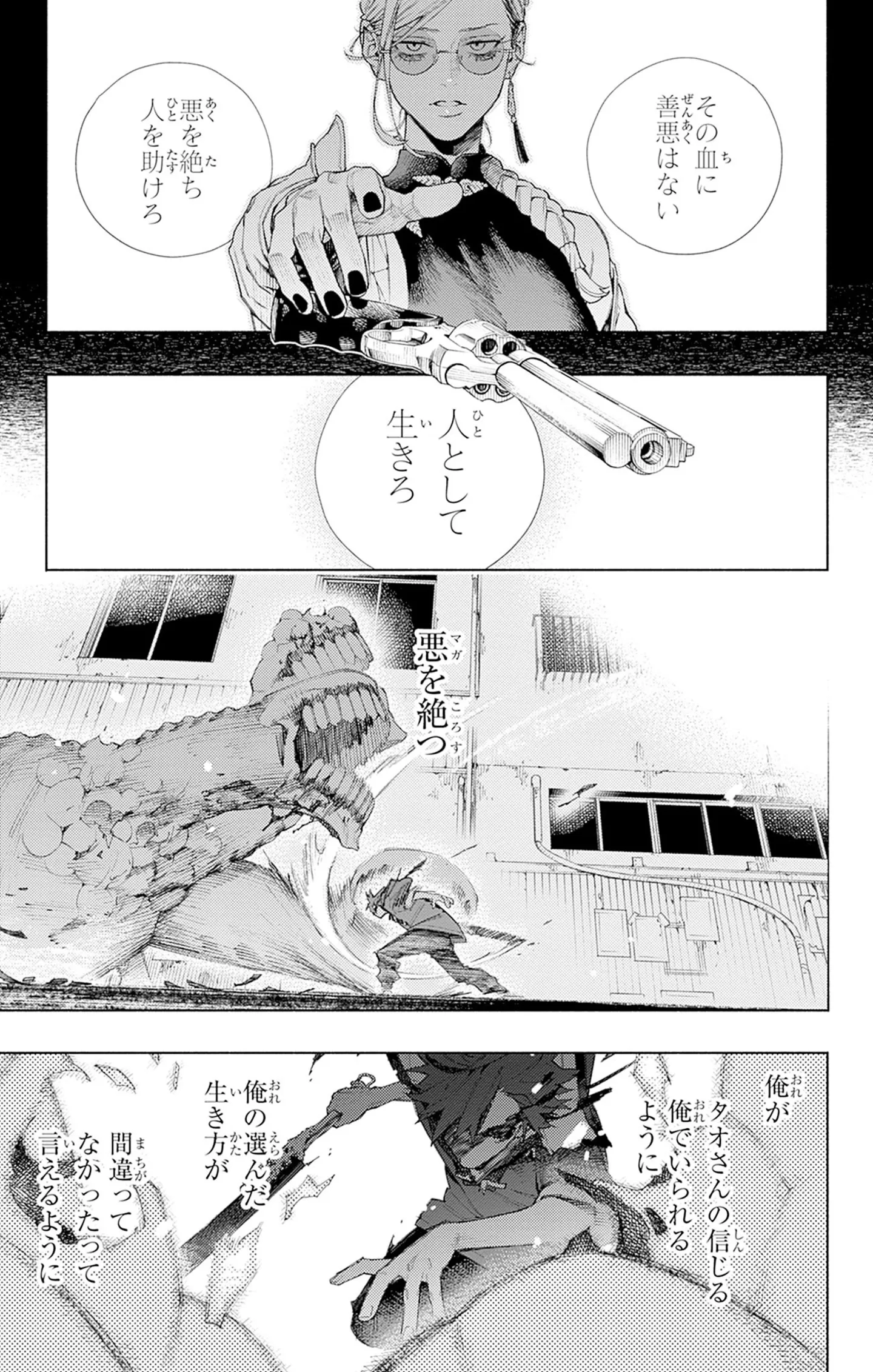 【極楽街 試し読み】自分自身のために敵を討つ。恐れられる姿でも誰かを救う力となる/極楽街⑧ マンガ 公開日:2026/2/11 この連載を最初から読む→ 『極楽街』(佐乃夕斗/集英社)第8回【全9回】 華やかな賑わいと深い闇が交錯する下町・極楽街。この秩序なき街で“問題解決屋”を営むタオとアルマ。2人の前に、失踪した獣人の友達を探す少年が現れる。跡を絶たない行方不明者と、動物たちの変死体──闇が街を支配する時、“解決屋”の別の顔が露わになる!! 人を襲い食らう異形を滅する! 『極楽街』のド迫力な激闘をお楽しみください! 【30日間無料】Amazonの読み放題をチェック > ©佐乃夕斗/集英社 本作品をAmazon(電子)で読む > 本作品をRenta!で読む > >> 次のページに続く 1 2 > あわせて読みたい 【本作のレビューを読む】 【漫画】『極楽街』を第1回から読む 【漫画】『あ、安部礼司です』を読む 最新マンガと話題の書籍を無料で試し読み! 前の回 一覧 人気の連載 次の回 極楽街 1 (ジャンプコミックスDIGITAL) 試し読み *電子書籍ストアBOOK☆WALKERへ移動します 極楽街 6 (ジャンプコミックスDIGITAL) 試し読み *電子書籍ストアBOOK☆WALKERへ移動します