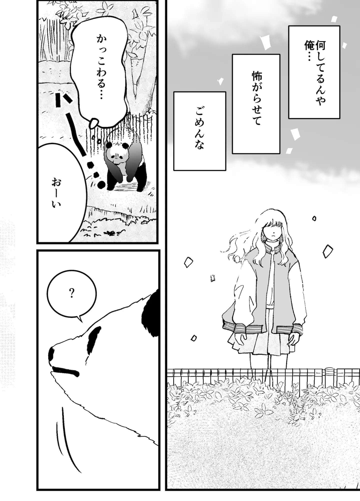 ナンパで困るクラスの女子を助けたい! パンダは、竹を手に取り振りかぶる/半田のパンダ⑤ マンガ 公開日:2026/1/25 この連載を最初から読む→ >> 次のページに続く « 1 2 3 4 5 > あわせて読みたい 努力嫌いのダウナー男子。女子から借りたハンカチの、お礼の仕方が分からない/ 半田のパンダ① 借りたハンカチを買い直しに動物園へ。ぶつかられた拍子に、パンダ像を倒してしまい…。/ 半田のパンダ② 壊した銅像の修理費は体で払え!? 着ぐるみに入り、動物園のパンダデビュー/ 半田のパンダ③ 借金のかたに動物園のパンダになった高校生。バイト中、クラスの女子がナンパされるのを目撃し…。/ 半田のパンダ④ 友だちがいない真面目な女子高生。屋上でお弁当を食べようとすると、ヤンキーに絡まれて大ピンチ!?/ひとりとひとりで恋になる① 最新マンガと話題の書籍を無料で試し読み! 前の回 一覧 人気の連載 次の回