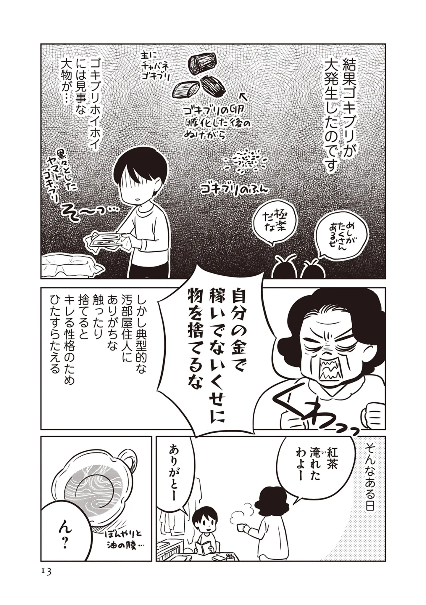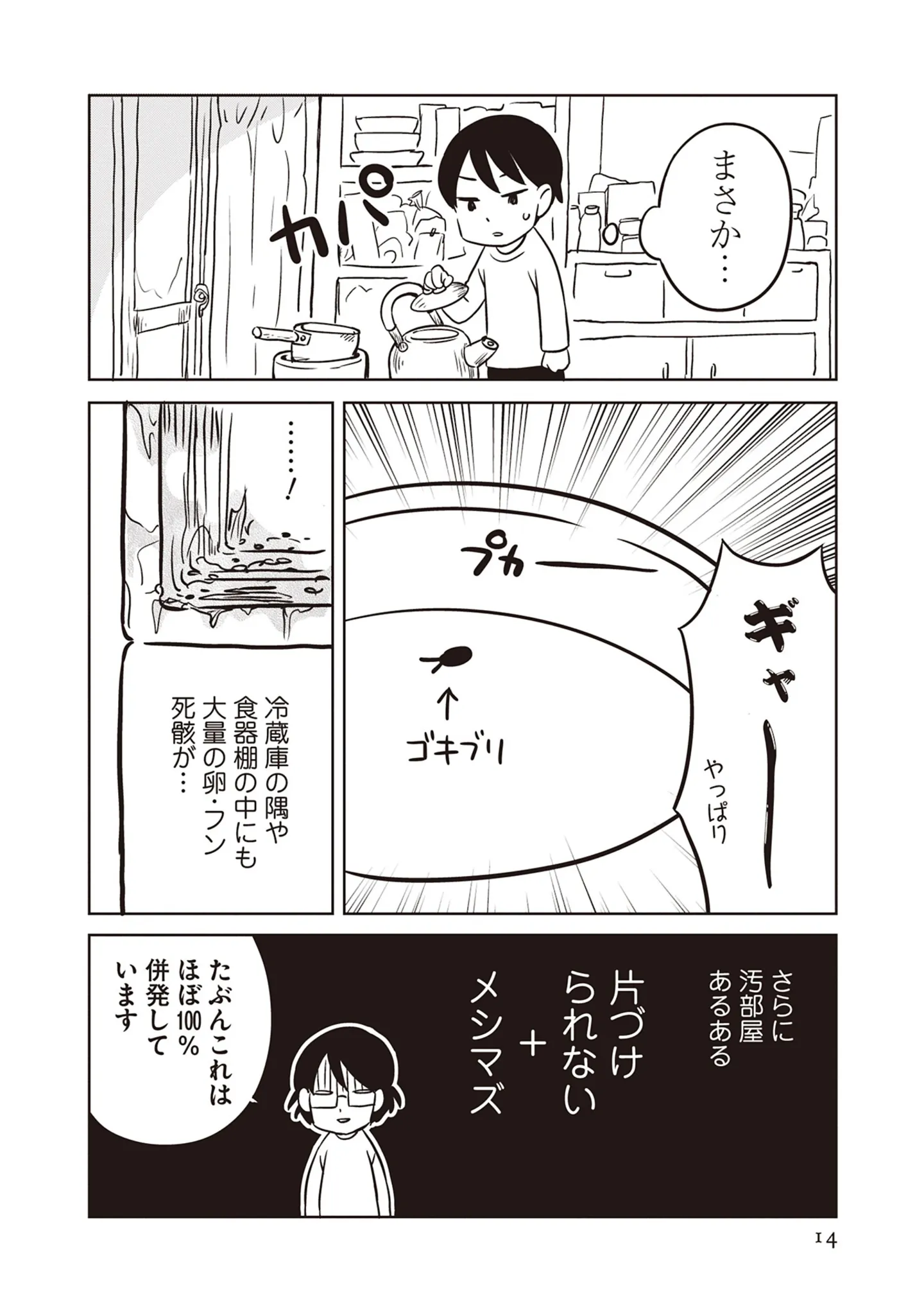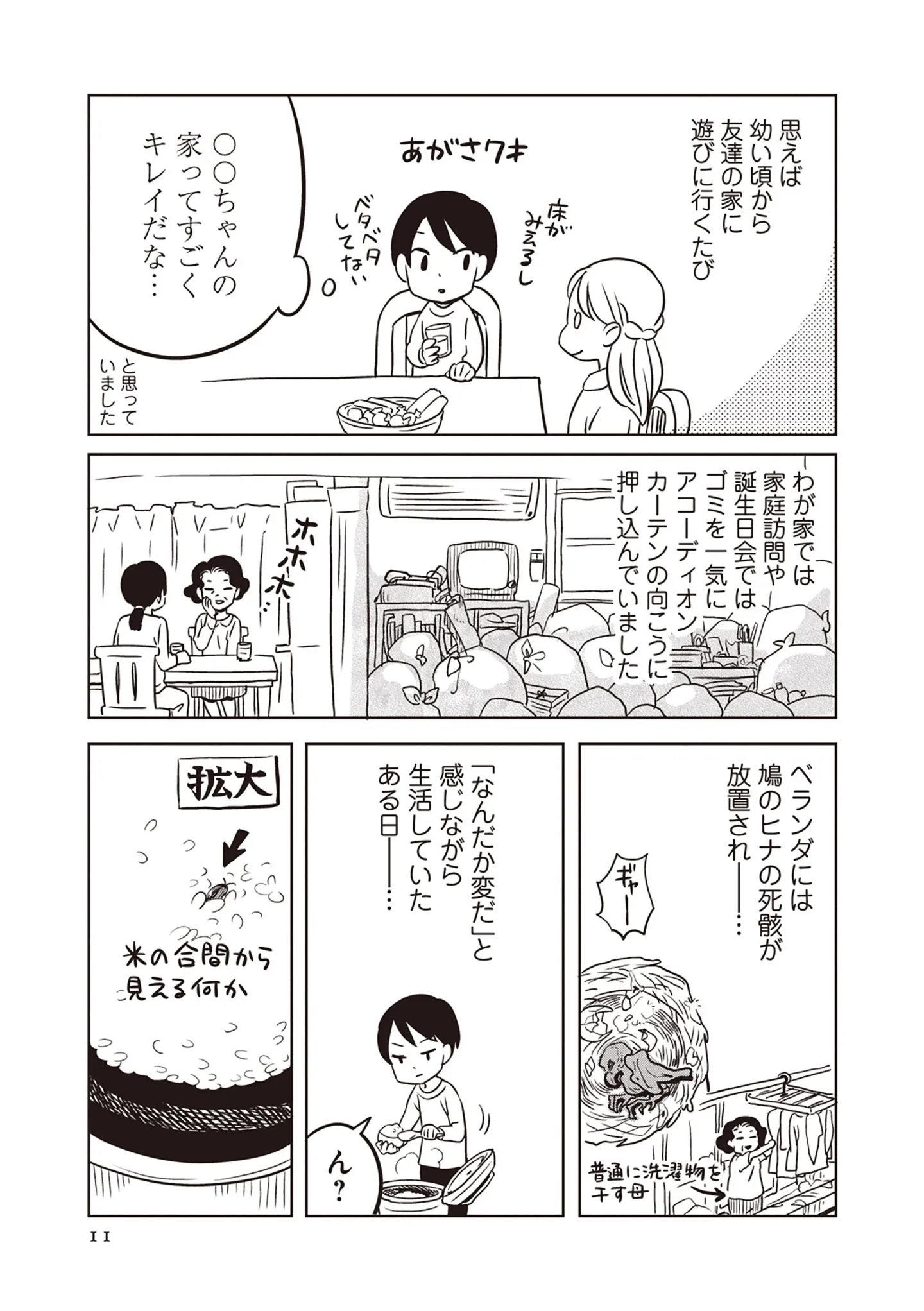 米にゴキブリが埋もれてる!? 違和感を持ちつつも汚屋敷に暮らしていた幼少期の思い出/母は汚屋敷住人 新装版② マンガ 公開日:2026/2/1 この連載を最初から読む→ <第3回に続く> 本作品をAmazon(電子)で読む > 本作品をRenta!で読む > 本作品をebookjapanで読む > 本作品をBOOK☆WALKERで読む > « 1 2 あわせて読みたい 【漫画】『母は汚屋敷住人 新装版』を第1回から読む 【漫画】『痔だと思ったら大腸がんステージ4でした 標準治療を旅と漫画で乗り越えてなんとか経過観察になるまで』を読む 【漫画】『パパ、赤ちゃんが生まれないなら再婚してもいいよ』を読む 最新マンガと話題の書籍を無料で試し読み! 前の回 一覧 人気の連載 次の回 母は汚屋敷住人 新装版 (バンブーコミックス エッセイセレクション)