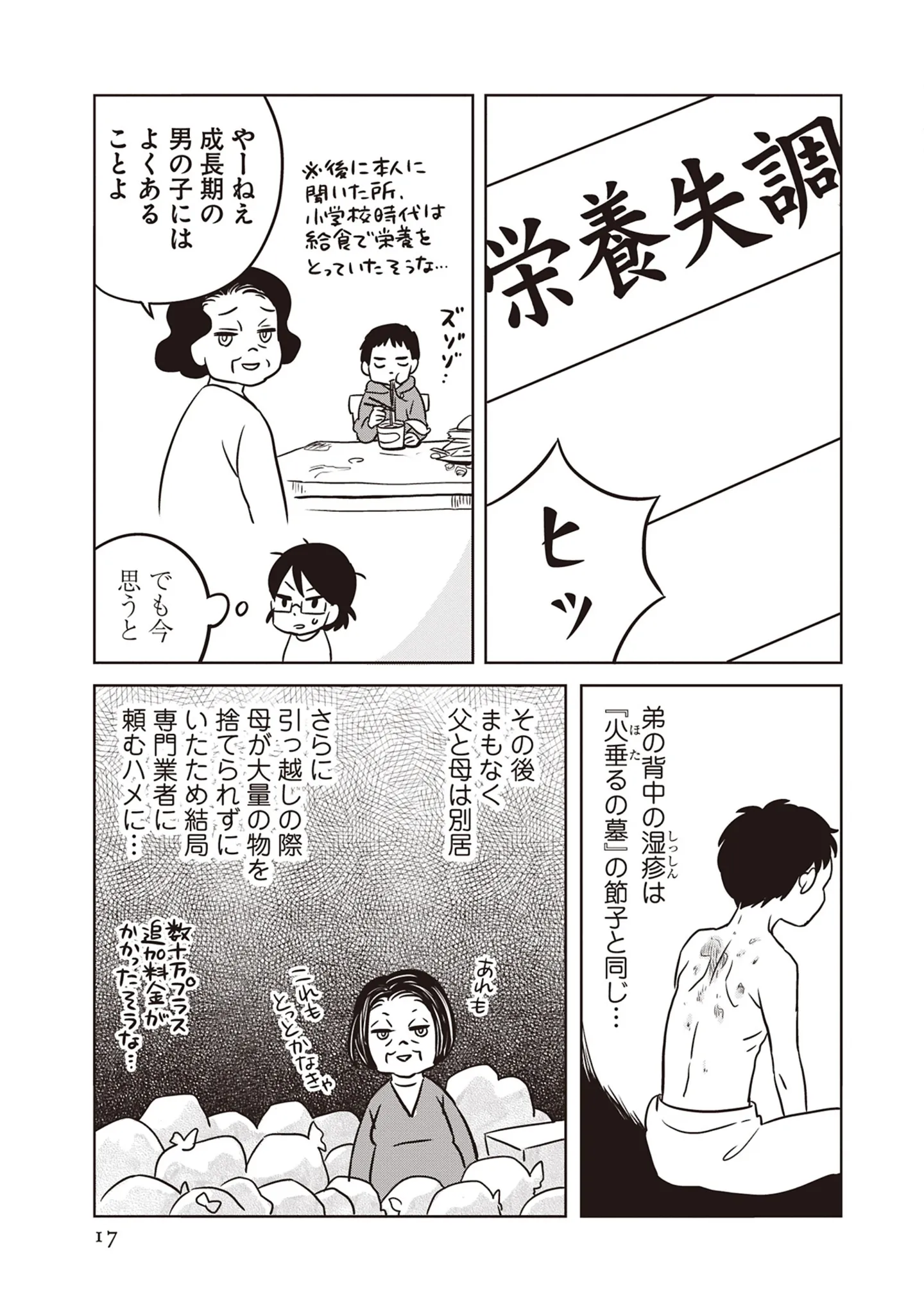 汚屋敷で家庭の味を知らず育った姉弟。炊事ができない母のもとで、弟は栄養失調に…!/母は汚屋敷住人 新装版③ マンガ 公開日:2026/2/2 この連載を最初から読む→ 本作品をAmazon(電子)で読む > 本作品をRenta!で読む > >> 次のページに続く « 1 2 3 > あわせて読みたい 【漫画】『母は汚屋敷住人 新装版』を第1回から読む 【漫画】『妻が別れを告げる時』を読む 【漫画】『夫ですが会社辞めました』を読む 最新マンガと話題の書籍を無料で試し読み! 前の回 一覧 人気の連載 次の回 母は汚屋敷住人 新装版 (バンブーコミックス エッセイセレクション)