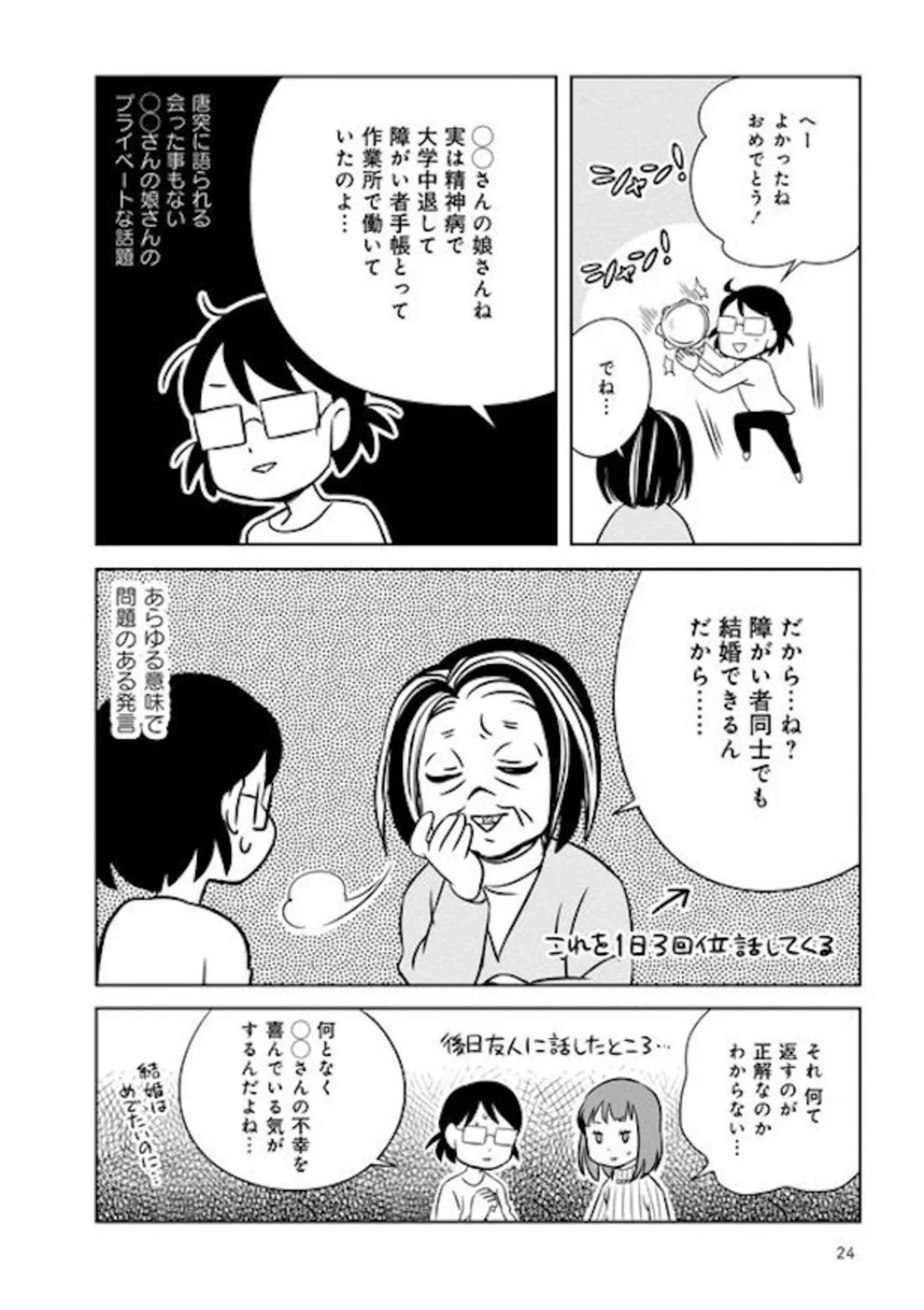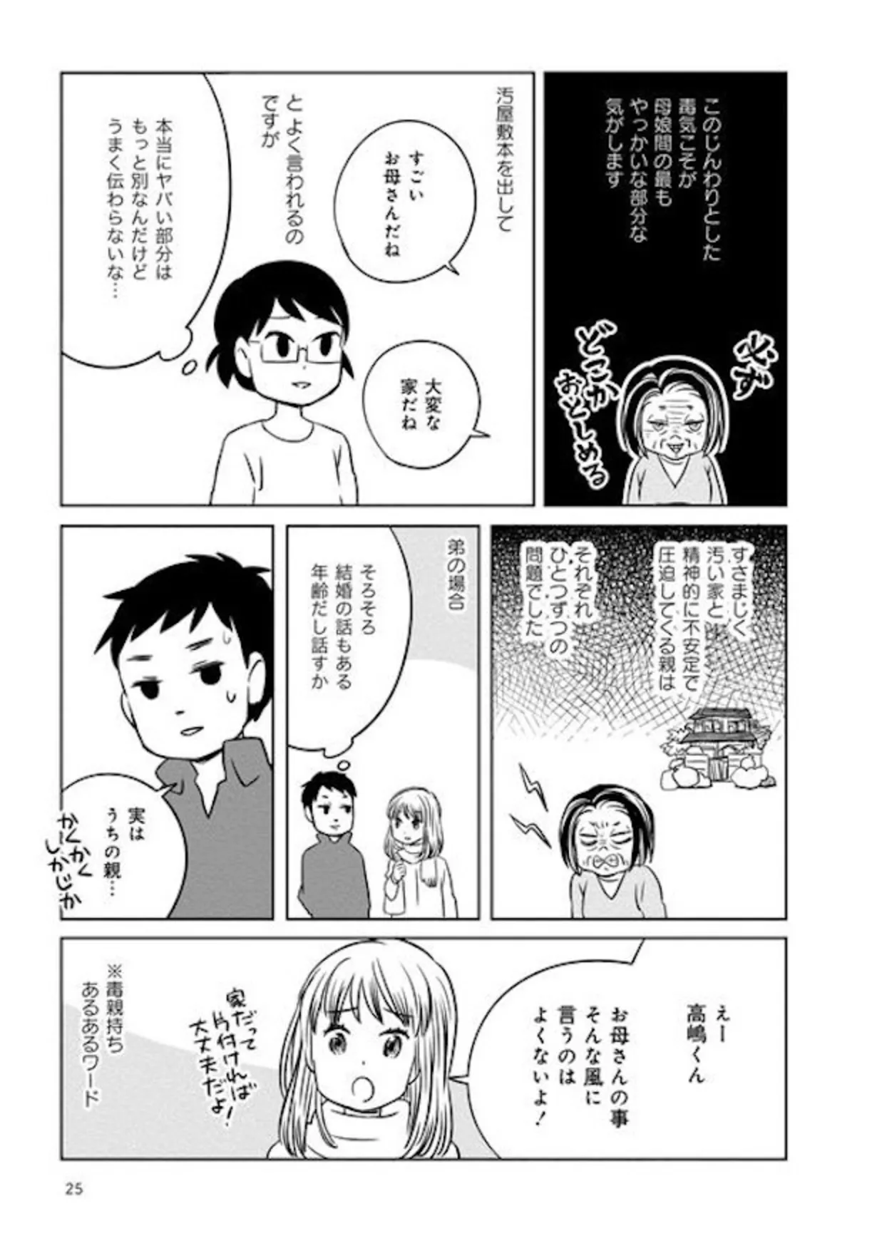 男子と接触禁止だったのに、年頃になると結婚を急かす母。姉弟に立ちはだかる結婚の壁/母を片づけたい③ マンガ 公開日:2026/2/10 この連載を最初から読む→ <第4回に続く> 本作品をAmazon(電子)で読む > 本作品をRenta!で読む > 本作品をebookjapanで読む > 本作品をBOOK☆WALKERで読む > « 1 2 3 あわせて読みたい 【漫画】『母を片づけたい~汚屋敷で育った私の自分育て直し~』を第1回から読む 【漫画】『夫ですが会社辞めました』を読む 【漫画】『妻が別れを告げる時』を読む 【漫画】『母は汚屋敷住人 新装版』を読む 最新マンガと話題の書籍を無料で試し読み! 前の回 一覧 人気の連載 次の回 母を片づけたい~汚屋敷で育った私の自分育て直し~ (バンブーコミックス エッセイセレクション) 試し読み *電子書籍ストアBOOK☆WALKERへ移動します