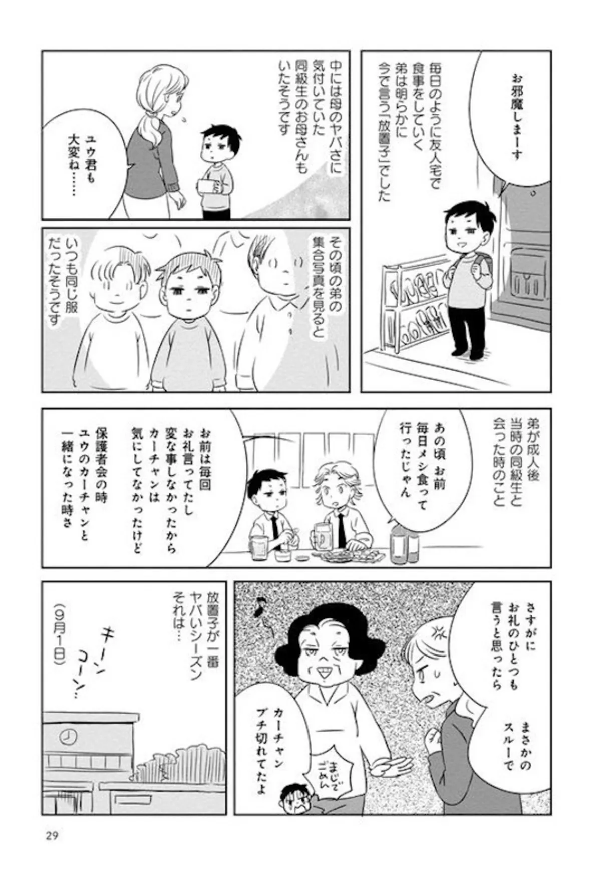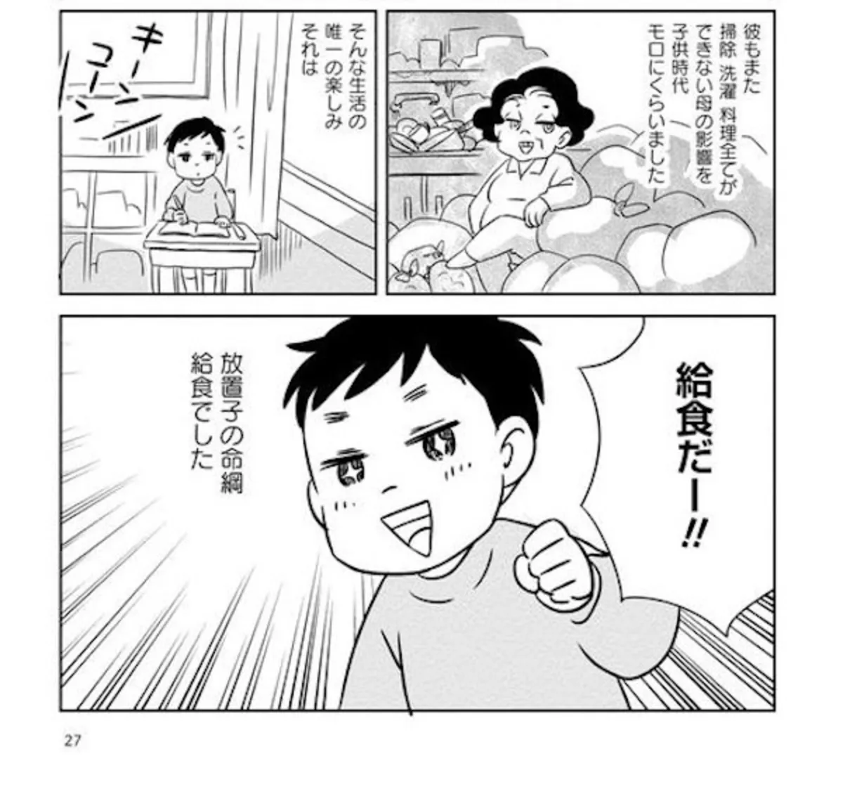 放置子だった弟の命綱は、給食と友人宅の夕食! 夏休みは一番やせこけてヤバい状況に!?/母を片づけたい④ マンガ 公開日:2026/2/11 この連載を最初から読む→ 本作品をAmazon(電子)で読む > 本作品をRenta!で読む > >> 次のページに続く « 1 2 3 > あわせて読みたい 【漫画】『母を片づけたい~汚屋敷で育った私の自分育て直し~』を第1回から読む 【漫画】『実家に帰りたくありません』を読む 【漫画】『母は汚屋敷住人 新装版』を読む 【漫画】『娘を妊娠させたのは誰ですか?』を読む 最新マンガと話題の書籍を無料で試し読み! 前の回 一覧 人気の連載 次の回 母を片づけたい~汚屋敷で育った私の自分育て直し~ (バンブーコミックス エッセイセレクション) 試し読み *電子書籍ストアBOOK☆WALKERへ移動します