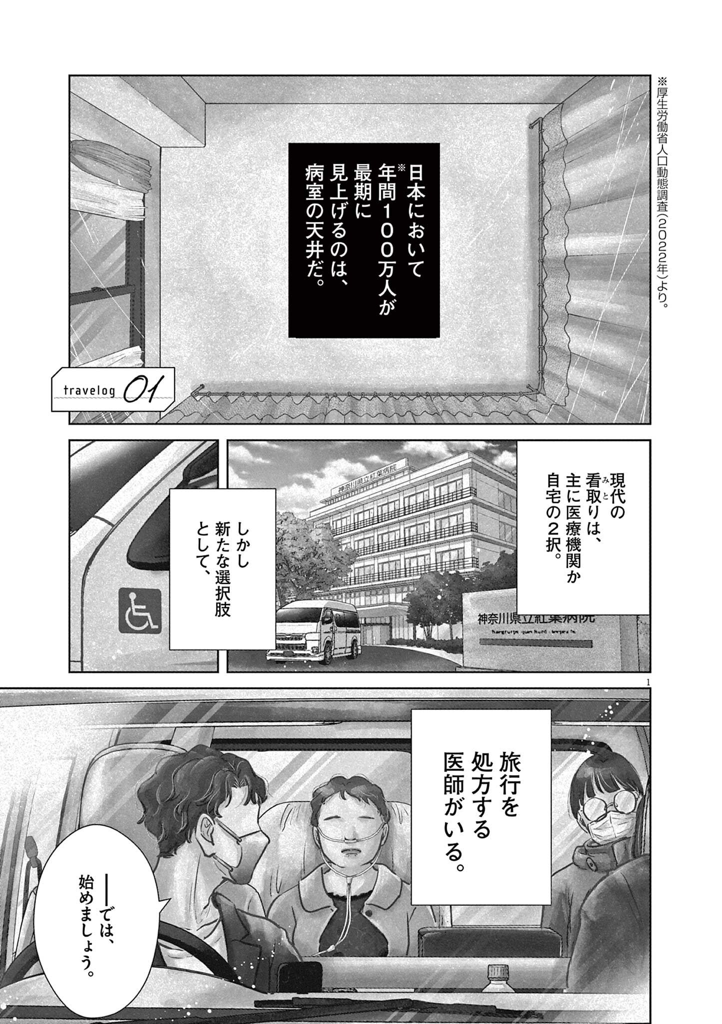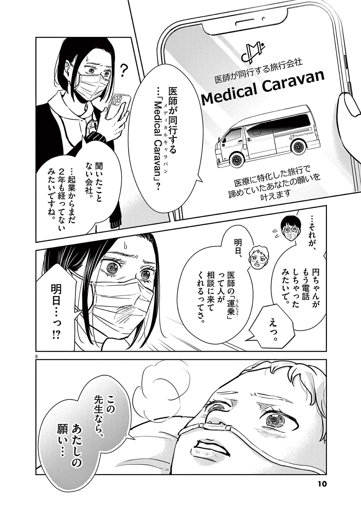 夫婦で京都へ行きたいと願う、余命残り1ヶ月の女性。旅を“処方”する旅行医から、旅行に対する覚悟を問われる/ディグニティ -旅行医の処方箋-(第1話)① 2枚目/全23枚 マンガ 公開日:2026/2/6