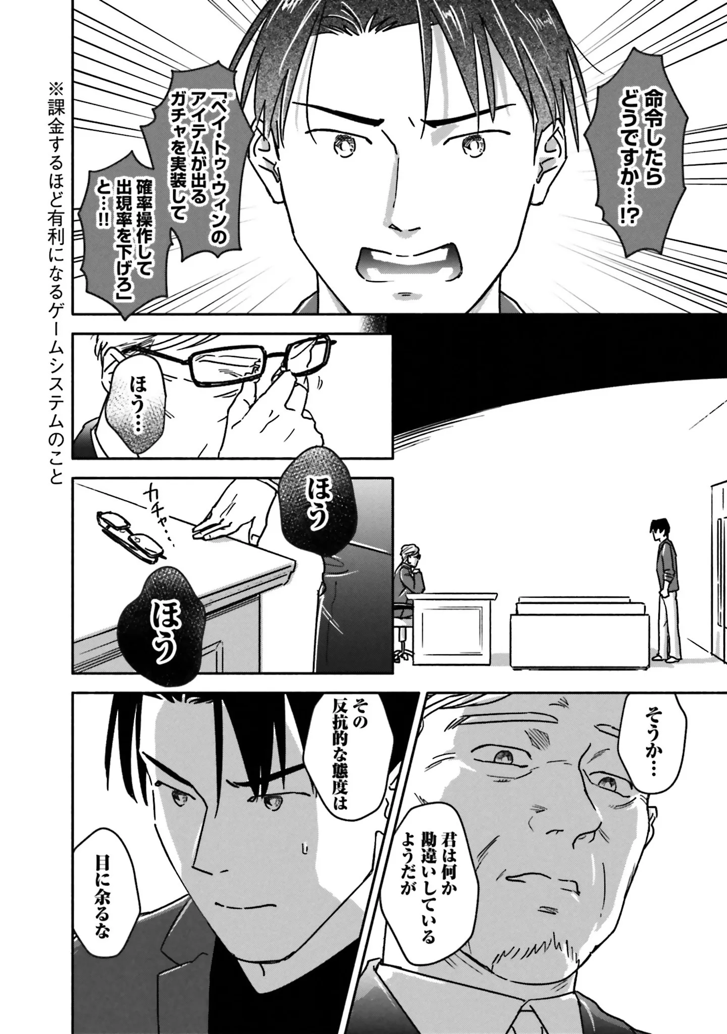 ガチャの不正操作を言外に示唆する局長。屈しないプランナーに局長がちらつかせたのは…/え、神絵師を追い出すんですか?3㉒ マンガ 公開日:2026/2/9 この連載を最初から読む→ <第23回に続く> 本作品をAmazon(電子)で読む > 本作品をRenta!で読む > 本作品をebookjapanで読む > 本作品をBOOK☆WALKERで読む > « 1 2 3 あわせて読みたい 【漫画】『え、神絵師を追い出すんですか?(1~3巻)』を第1回から読む 【漫画】『妻が別れを告げる時』を読む 【漫画】『会社がツライ なりたい自分を見つけるまで』を読む 最新マンガと話題の書籍を無料で試し読み! 前の回 一覧 人気の連載 次の回 え、神絵師を追い出すんですか? 1 (BRIDGE COMICS) 試し読み *電子書籍ストアBOOK☆WALKERへ移動します え、神絵師を追い出すんですか? 2 (BRIDGE COMICS) 試し読み *電子書籍ストアBOOK☆WALKERへ移動します え、神絵師を追い出すんですか? 3 (BRIDGE COMICS) え、神絵師を追い出すんですか? (富士見L文庫) 試し読み *電子書籍ストアBOOK☆WALKERへ移動します