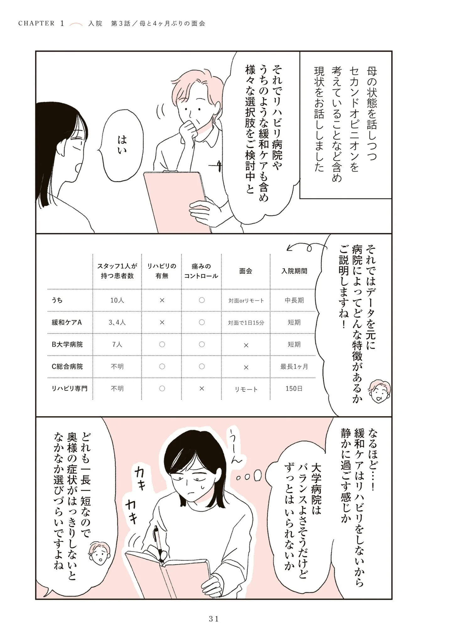 母を元気づけるためプレゼントを持って病院に。4カ月ぶりに会う母の姿に言葉を失う/20代、親を看取る。④ マンガ 公開日:2026/2/16 この連載を最初から読む→ 本作品をAmazon(電子)で読む > 本作品をRenta!で読む > >> 次のページに続く « 1 2 3 > あわせて読みたい 【漫画】『20代、親を看取る。』を第1回から読む 【漫画】『認知症が見る世界 現役ヘルパーが描く介護現場の真実』を読む 【漫画】『娘を妊娠させたのは誰ですか?』を読む 最新マンガと話題の書籍を無料で試し読み! 前の回 一覧 人気の連載 次の回 20代、親を看取る。 (コミックエッセイ) 試し読み *電子書籍ストアBOOK☆WALKERへ移動します 父が全裸で倒れてた。【電子特典付き】 (コミックエッセイ) 試し読み *電子書籍ストアBOOK☆WALKERへ移動します