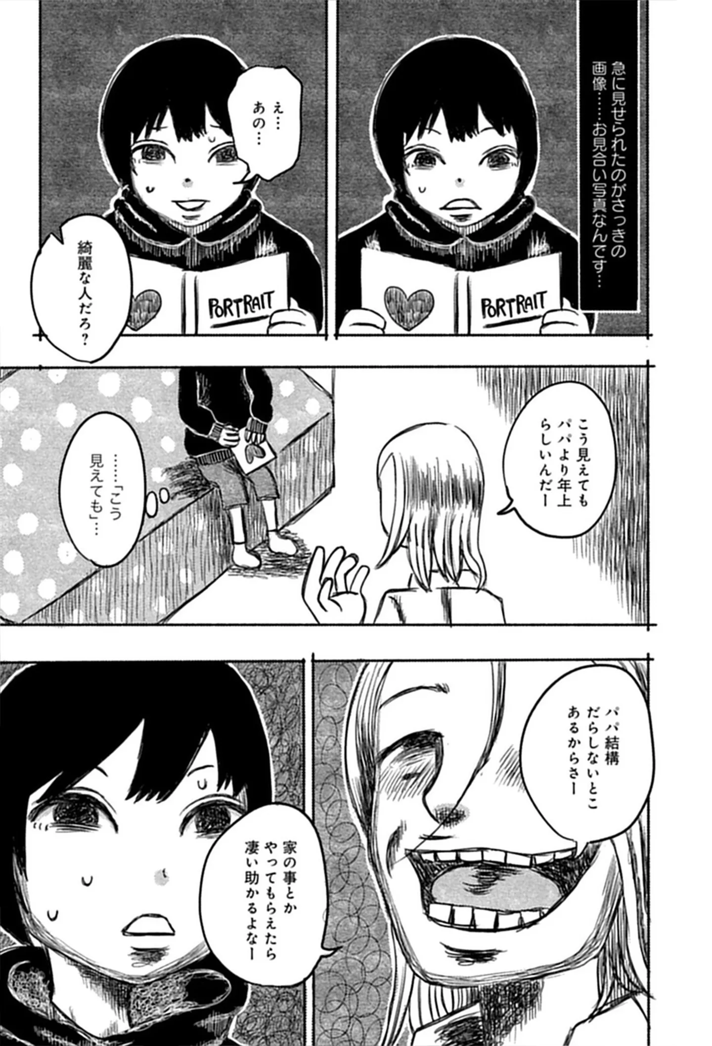 男手ひとつで育ててくれた父がお見合い。嬉しそうに見せてくれた相手の写真はまるで…/この画像を見てください⑤ マンガ 公開日:2026/2/11 この連載を最初から読む→ 本作品をAmazon(電子)で読む > 本作品をRenta!で読む > >> 次のページに続く « 1 2 3 > あわせて読みたい 【漫画】『この画像を見てください』を第1回から読む 【漫画】『ちっちゃくてかわいいワタシ 痛すぎる勘違い女の正体』を読む 【漫画】『三島屋変調百物語』を読む 最新マンガと話題の書籍を無料で試し読み! 前の回 一覧 人気の連載 次の回 この画像を見てください (1) (バンブーコミックス エッセイセレクション) 試し読み *電子書籍ストアBOOK☆WALKERへ移動します