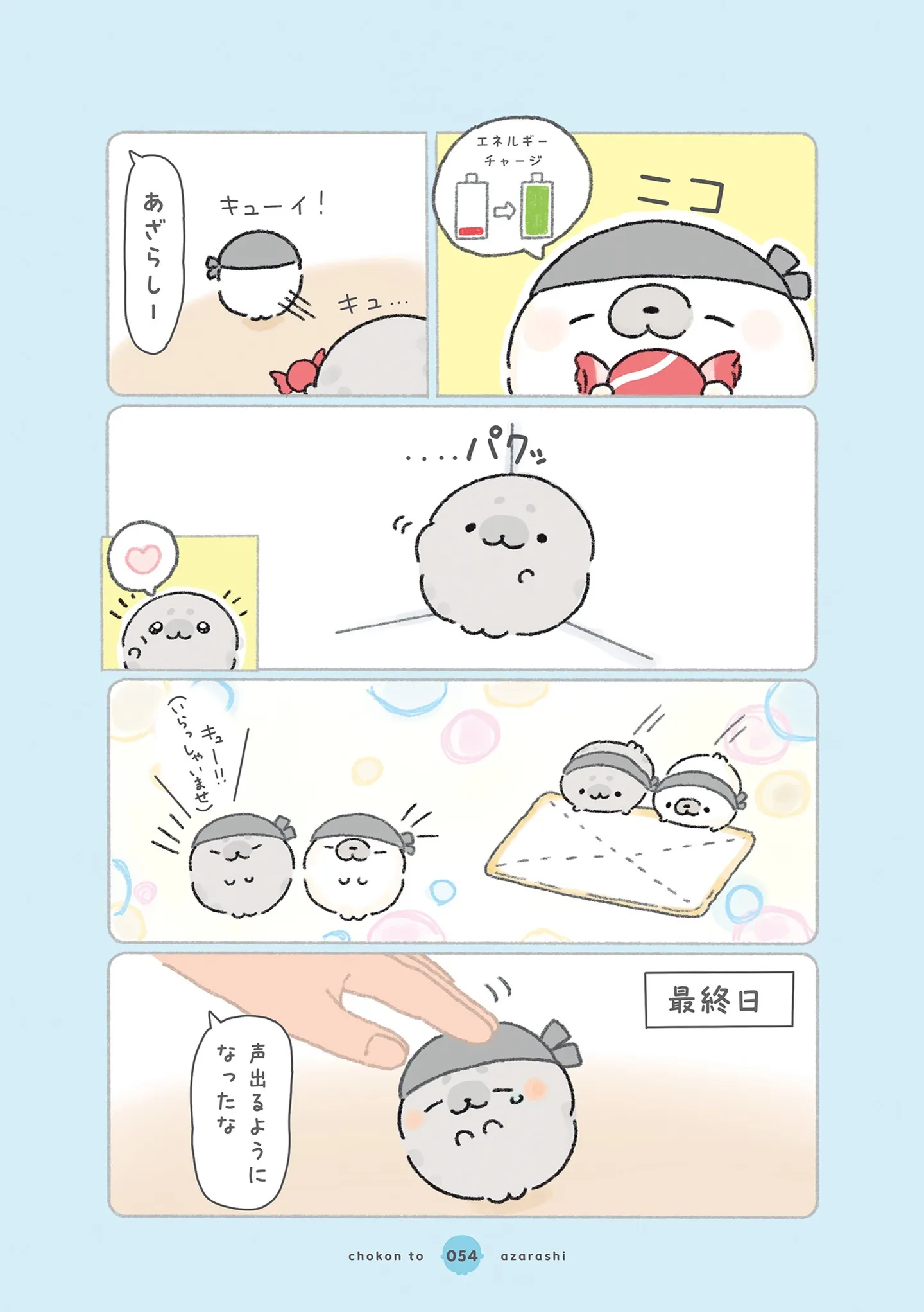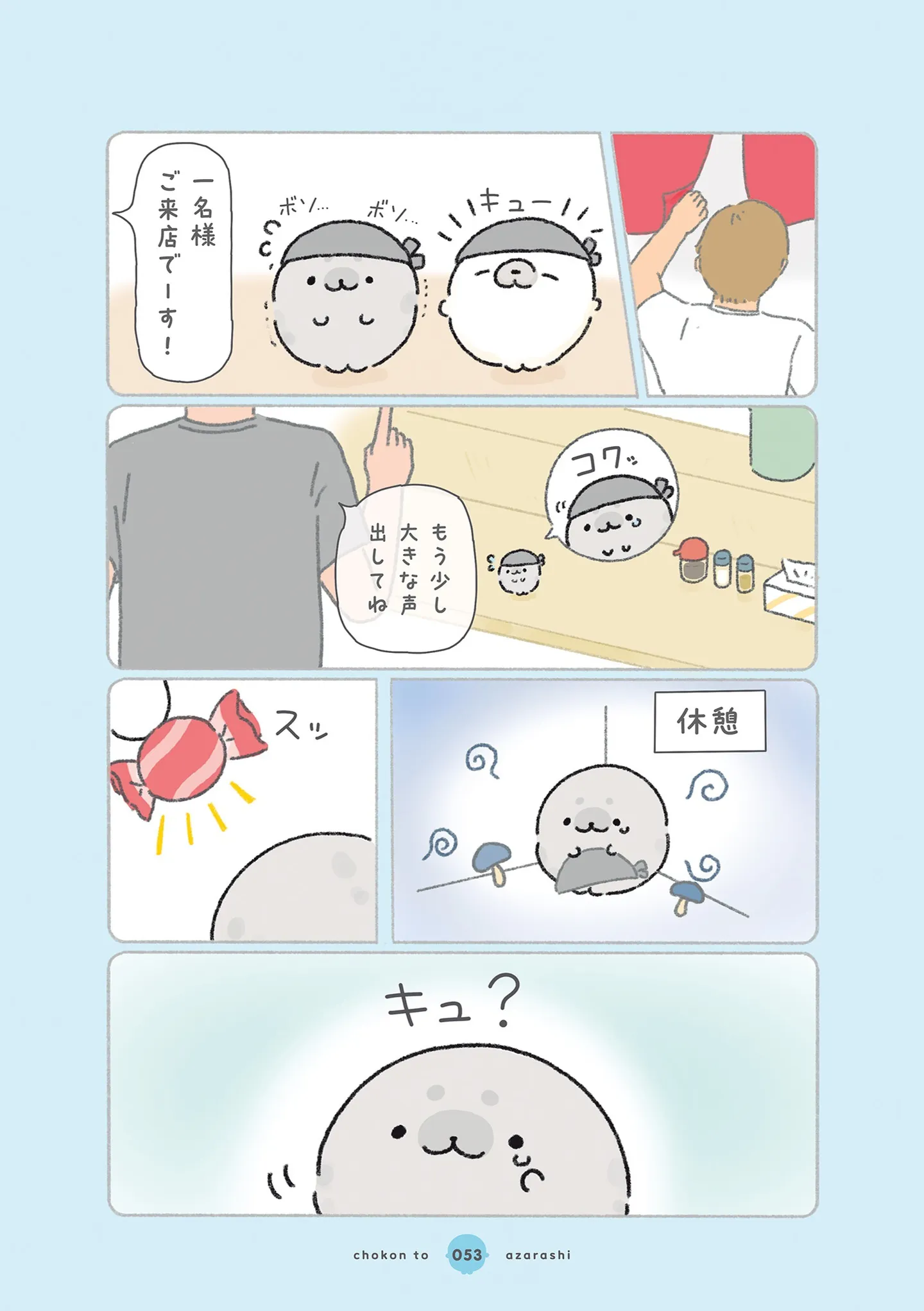 バイト初日で緊張する新人あざらし。先輩が休憩中に元気の源をプレゼント!/ちょこんとあざらし⑥ マンガ 公開日:2026/2/12 この連載を最初から読む→ <第7回に続く> 本作品をAmazon(電子)で読む > 本作品をRenta!で読む > 本作品をebookjapanで読む > 本作品をBOOK☆WALKERで読む > « 1 2 あわせて読みたい 【漫画】『ちょこんとあざらし』を第1回から読む 【漫画】『ねこようかい』を読む 【漫画】『グランプリは私ですけど何か?~自己肯定モンスターのミスコン無双~』を読む 最新マンガと話題の書籍を無料で試し読み! 前の回 一覧 人気の連載 次の回 ちょこんとあざらし (コミックエッセイ) 試し読み *電子書籍ストアBOOK☆WALKERへ移動します