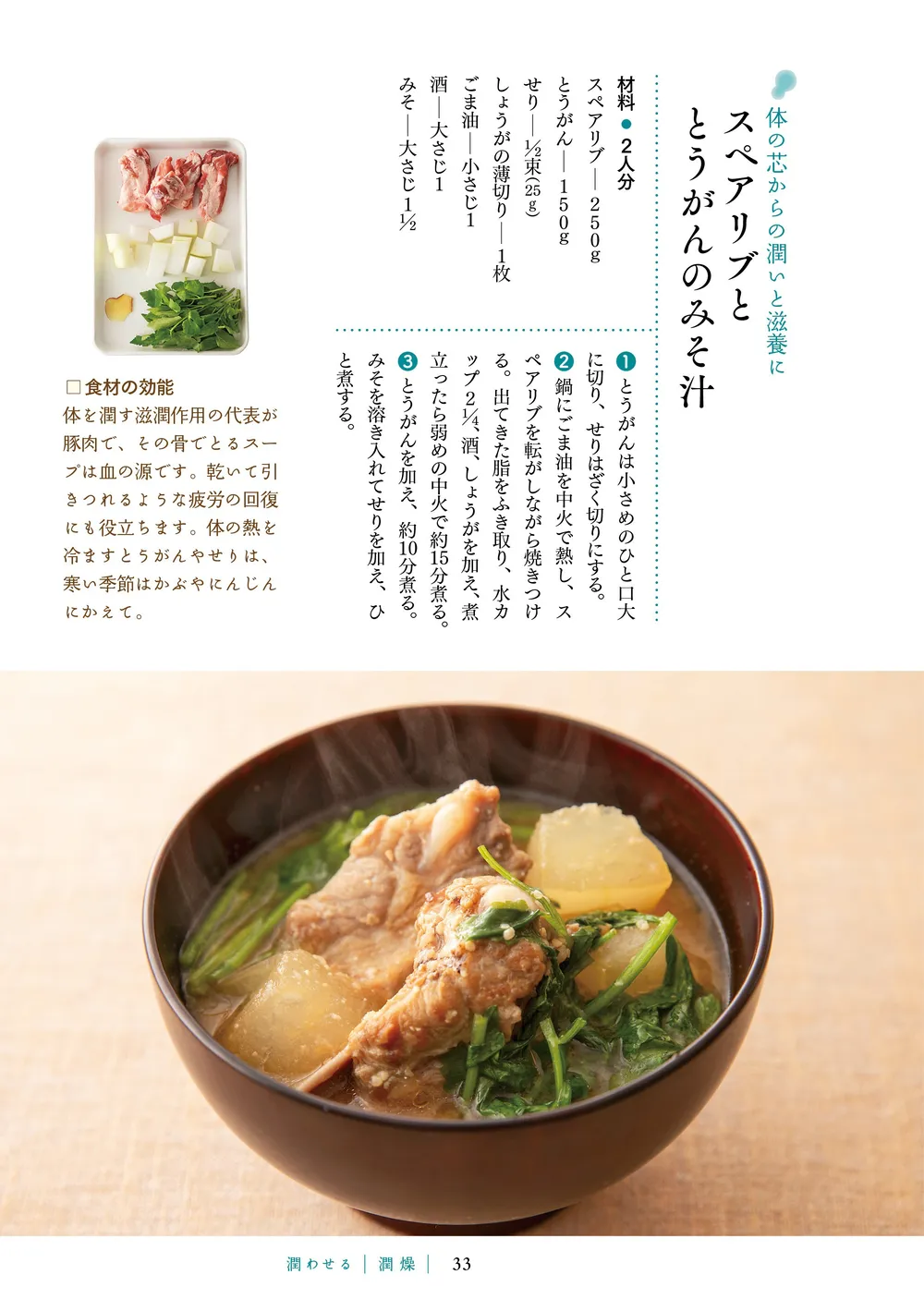 豚レバーとにらのみそ汁、スペアリブととうがんのみそ汁、レンズ豆と鶏肉のカレーみそ汁──そのレシピには、これまでみそ汁の具としては想像したことのない組み合わせも並ぶ。なのに、写真を見ると、「おいしそうで体にも良さそうだな」と感じてしまう……。
