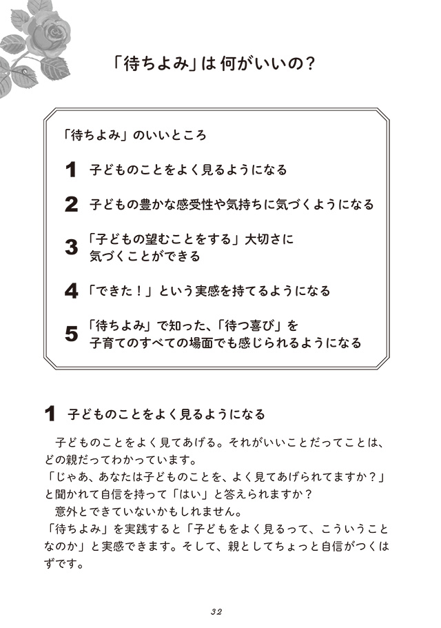 その様子を見た内田さんは、「子どもを大切に思う親の姿がここにある」と確信したとか。親が子どもを待つことができれば、子どもは、自分の望みが叶えられる満足感と、愛されている安心感を得ることができる。そして、このお母さんのように子育てに自信がない人に「もう十分に幸せな子育てができていますよ」と伝えたくて、「待ちよみ」という言葉を作ったといいます。