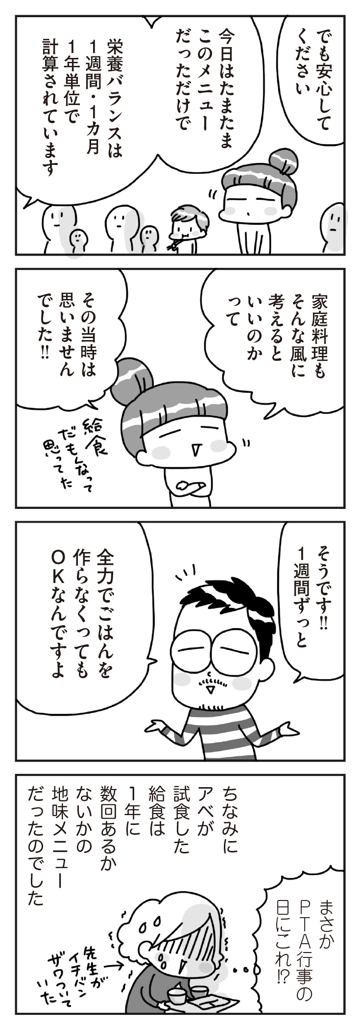 毎日のお弁当作り。「成長期なのにこのお弁当でいいのかな…」と栄養バランスを考えると不安になる/料理は妻の仕事ですか? マンガ 公開日:2023/2/4 この連載を最初から読む→ <第10回に続く> 『料理は妻の仕事ですか?』を楽天Kobo(電子)で読む > 『料理は妻の仕事ですか?』をブックライブで読む > 『料理は妻の仕事ですか?』をDMMブックスで読む > 『料理は妻の仕事ですか?』をAmazon(電子)で読む > « 1 2 3 4 最新マンガと話題の書籍を無料で試し読み! 前の回 一覧 人気の連載 次の回 料理は妻の仕事ですか? (コミックエッセイ) 試し読み *電子書籍ストアBOOK☆WALKERへ移動します