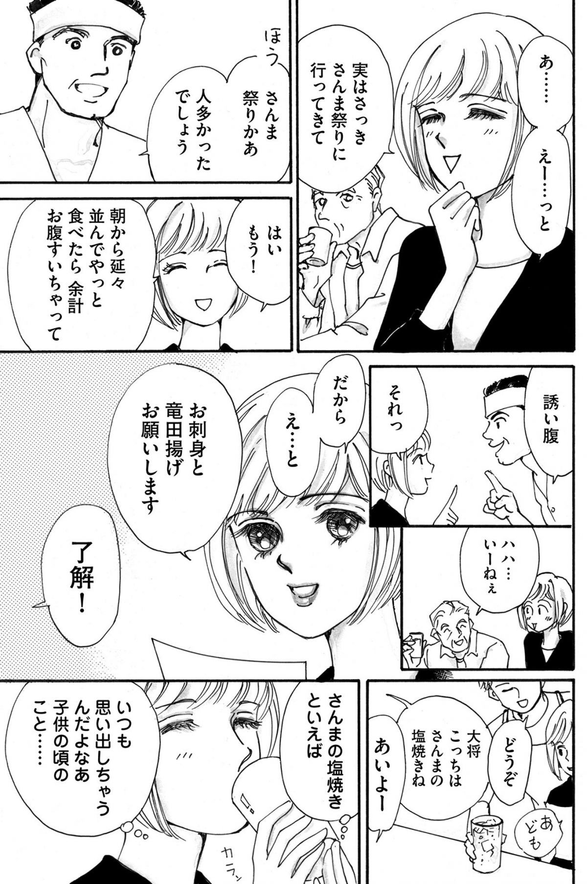 気になっていた魚メインの居酒屋へ。さんまの刺身の盛りつけがかわいい!/ふわふわ志保のほっこりごはん② マンガ 公開日:2024/5/25 この連載を最初から読む→ <第3回に続く> 本作品をAmazon(電子)で読む > 本作品をebookjapanで読む > 本作品をブックライブで読む > 本作品をBOOK☆WALKERで読む > « 1 2 あわせて読みたい 今日は給料日! 訓練を終え、お腹を空かせた衛兵ふたりが向かった先は…/異世界居酒屋「のぶ」1① 飲み会で女子がおしぼりで拭くのはどこまでがセーフ? ワキはアウト、首は女子だけの個室ならよし!?/のみじょし1 保育士は肩が凝る!「とんとんしゅるよ~」と園児が肩タタキしてくれたけど…/実録 保育士でこ先生4 最新マンガと話題の書籍を無料で試し読み! 前の回 一覧 人気の連載 次の回 ふわふわ志保のほっこりごはん1巻