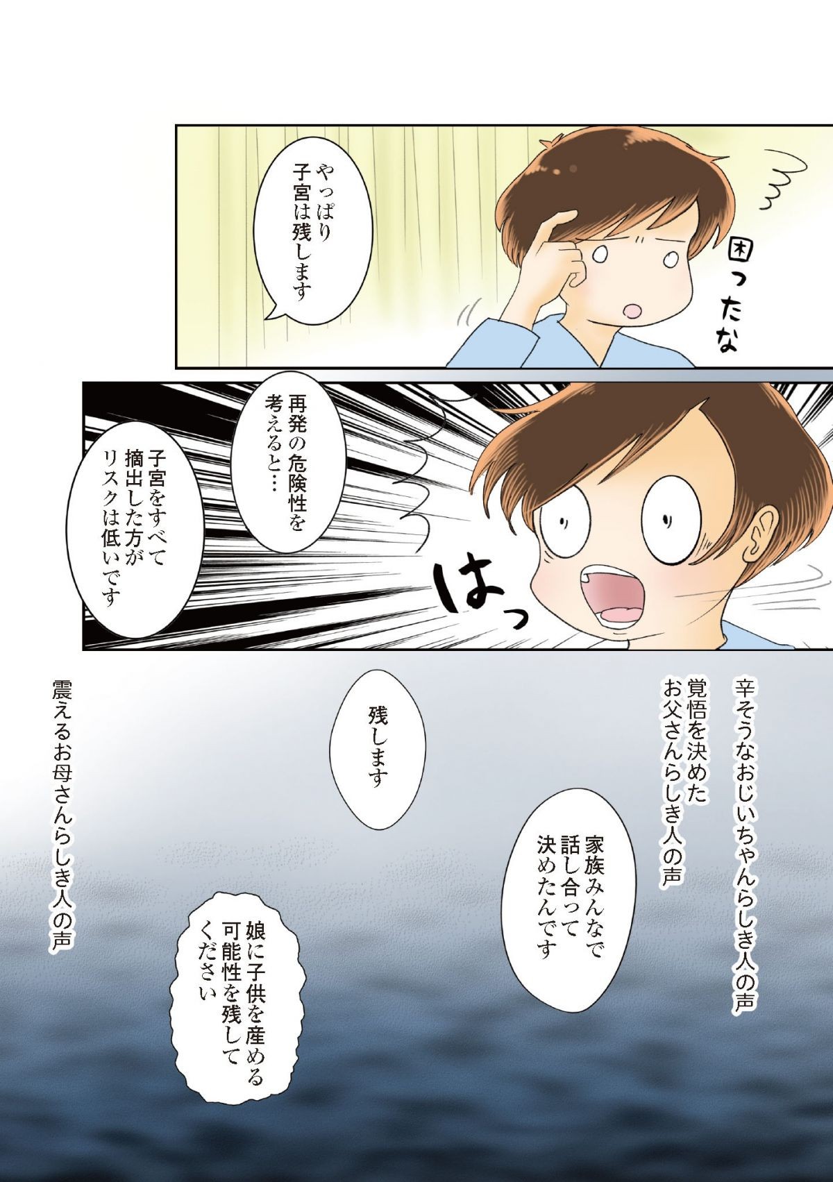 「子どもを産める可能性を残して」ガン病棟に緊急入院した女の子と家族の願い/続 鼻腔ガンになった話 未来への道 マンガ 更新日:2024/10/8 この連載を最初から読む→ <第3回に続く> 本作品をAmazon(電子)で読む > 本作品をRenta!で読む > 本作品をebookjapanで読む > 本作品をBOOK☆WALKERで読む > « 1 2 3 あわせて読みたい ガンと宣告された2児の母。放射線治療と化学療法を経て、いざ手術へ/続 鼻腔ガンになった話 未来への道 母の長期入院で子どもたちの体にも影響が…。ガンになってわかった家族の“絶妙なバランス”/鼻腔ガンになった話 音が半音下がって聞こえる!? そんな副作用の可能性のある薬があるなんて!/クスリとリスクと薬剤師 【漫画】『母のお酒をやめさせたい』を読む 【漫画】『キレる私をやめたい』を読む 最新マンガと話題の書籍を無料で試し読み! 前の回 一覧 人気の連載 次の回 続 鼻腔ガンになった話 未来への道 (コミックエッセイ) 鼻腔ガンになった話 (コミックエッセイ) 試し読み *電子書籍ストアBOOK☆WALKERへ移動します