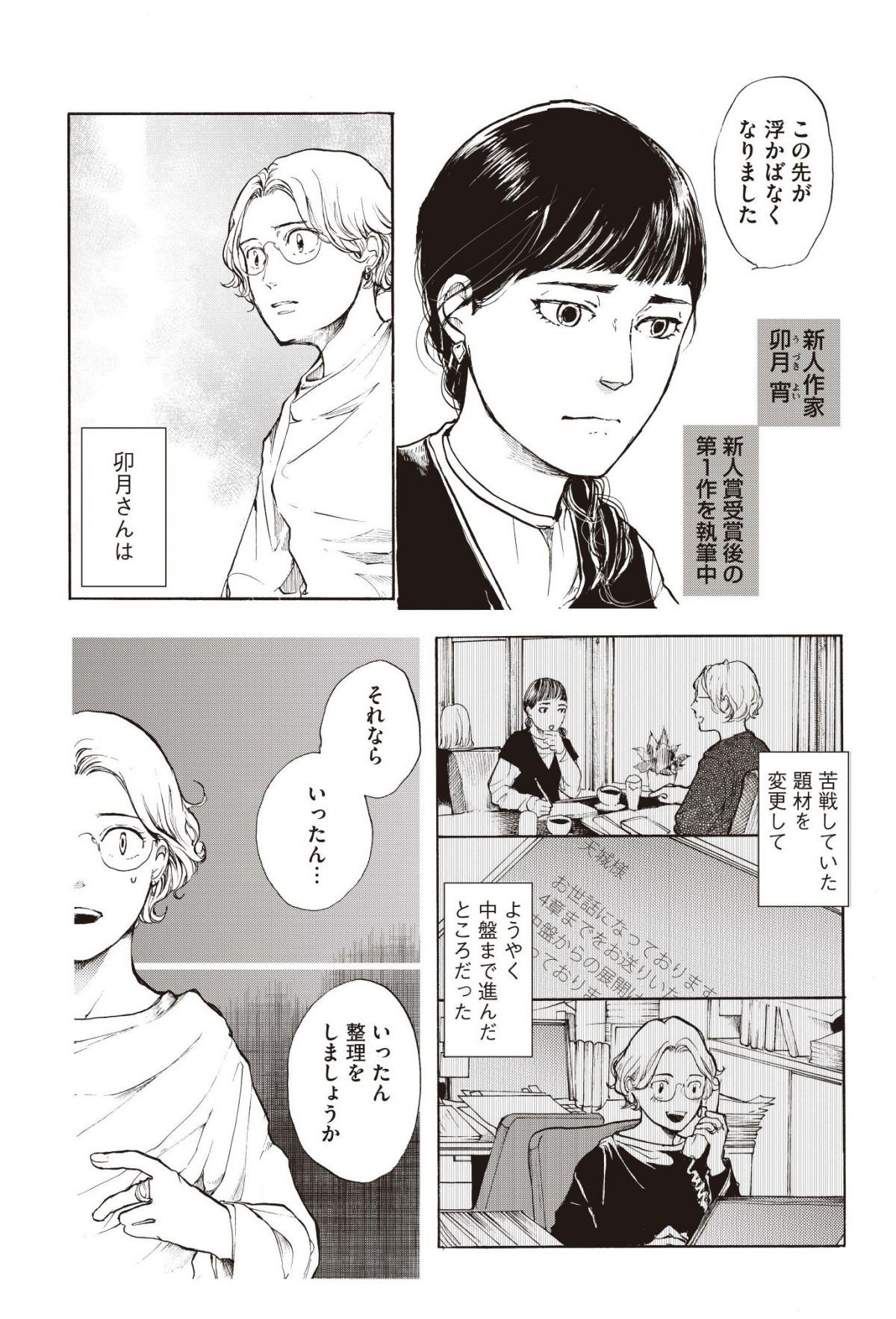 「気づかれないものは、存在すらしないもの」。小説を世に送り出す難しさ/書くなる我ら② マンガ 公開日:2024/11/1 この連載を最初から読む→ 『書くなる我ら』(北駒生/講談社)第2回【全5回】 小説界に熱い風を吹かせたいと望む主人公・天城勇芽は、文芸誌「群青」で働く女性編集者。若い世代向けの新文芸誌創刊の計画があると聞いた勇芽は、さっそく作家のスカウトに奔走する。出会ったのは、女優やミュージシャン、前科者に酪農家などさまざまな人生を送ってきた、ひと癖もふた癖もある書き手たち。小説を「書く人」と「編む人」が紡ぐ熱き物語が今、始まる――! 文芸の世界をあざやかに描き出すお仕事群像劇『書くなる我ら』をお楽しみください。 【30日間無料】Amazonの読み放題をチェック > 本作品をAmazon(電子)で読む > 本作品をRenta!で読む > >> 次のページに続く 1 2 3 > あわせて読みたい 【漫画】『書くなる我ら』を読む 【漫画】『コウノトリのお手伝い』を読む 【漫画】『まどか26歳、研修医やってます! 』を読む 最新マンガと話題の書籍を無料で試し読み! 前の回 一覧 人気の連載 次の回 書くなる我ら(1) (モーニングコミックス) 試し読み *電子書籍ストアBOOK☆WALKERへ移動します