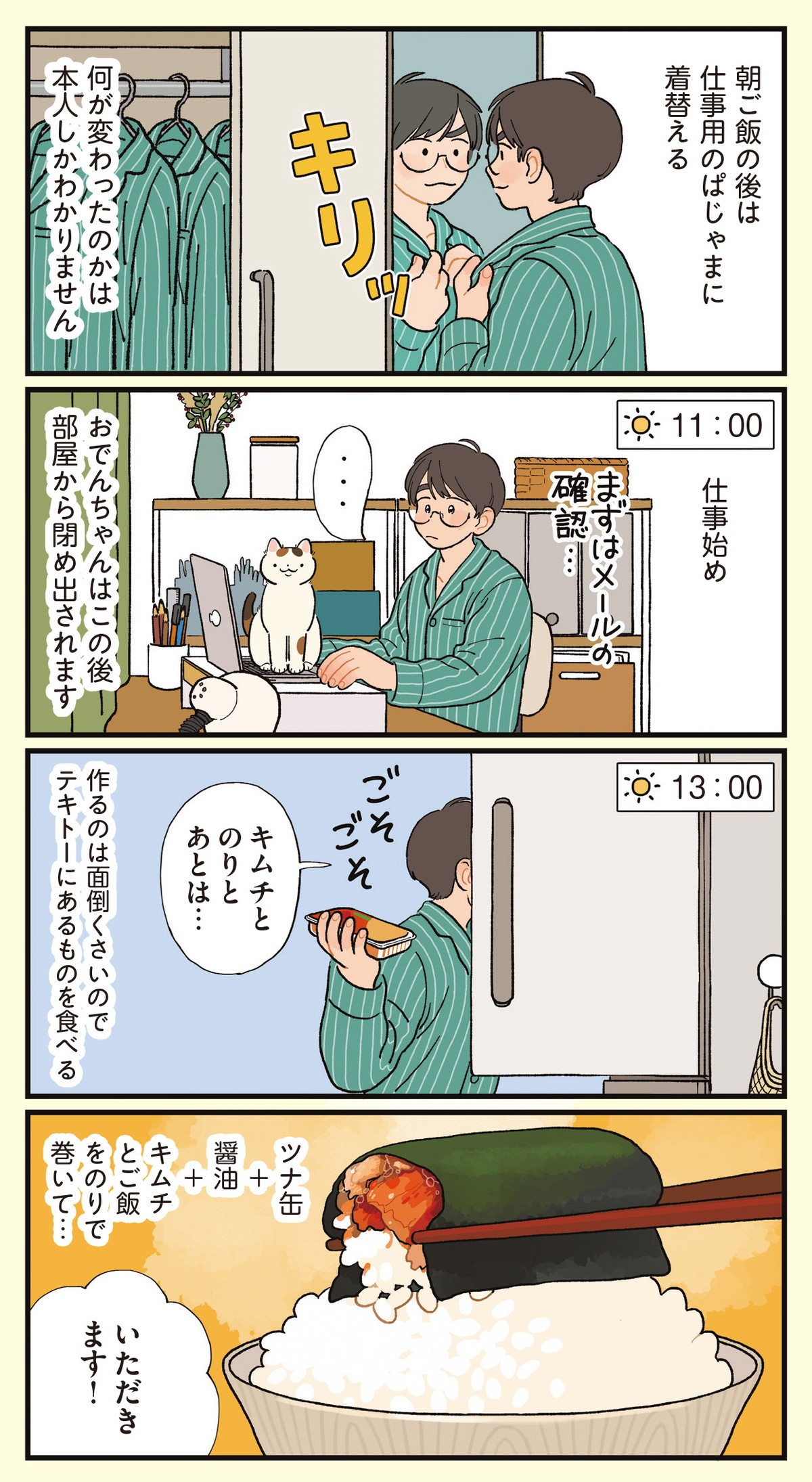 朝は大の苦手な夜型人間。ぱじゃま偏愛在宅ワーク男子が作る満腹レシピをご紹介!/ぱじゃまご飯① マンガ 更新日:2025/1/6 プロローグ <第2回に続く> 本作品をAmazon(電子)で読む > 本作品をブックライブで読む > 本作品をDMMブックスで読む > 本作品をBOOK☆WALKERで読む > « 1 2 あわせて読みたい 【漫画】『ぱじゃまご飯』を読む 【漫画】『合鍵くんと幸せごはん』を読む 【漫画】『異世界居酒屋「のぶ」』を読む 最新マンガと話題の書籍を無料で試し読み! 前の回 一覧 人気の連載 次の回 ぱじゃまご飯 (コミックエッセイ) 試し読み *電子書籍ストアBOOK☆WALKERへ移動します