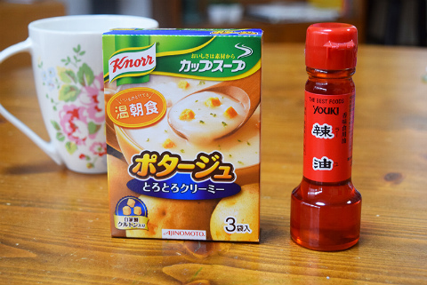 市販のポタージュスープにラー油を投入する瞬間、なんだかちょっとした背徳感があった。