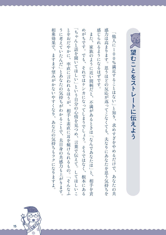 反応が薄い夫との会話に不満が募る…! そんな悩めるあなたへ。解決方法を伝授します!/マンガでわかる お気楽のヒントシリーズ「夫」③ マンガ 公開日:2021/4/23 私の気持ち察してよ~ 夫へのモヤモヤがパッと晴れる考え方のコツ【マンガでわかる お気楽のヒントシリーズ】② (C)オレンジページ/監修:石原加受子、イラスト:今井久恵、構成・文:神坐陽子 <第4回に続く> « 1 2 前の回 一覧 人気の連載 次の回 私の気持ち察してよ~ 夫へのモヤモヤがパッと晴れる考え方のコツ【マンガでわかる お気楽のヒントシリーズ】② どうして私はくよくよしやすいの? 自分へのモヤモヤがパッと晴れる考え方のコツ【マンガでわかる お気楽のヒントシリーズ】① 振り回されっぱなしで疲れちゃう 子どもへのモヤモヤがパッと晴れる考え方のコツ【マンガでわかる お気楽のヒントシリーズ】③ どうしたらうまくつきあえるの!? 親へのモヤモヤがパッと晴れる考え方のコツ【マンガでわかる お気楽のヒントシリーズ】④