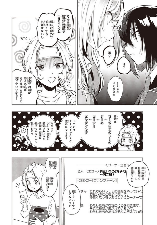 学校で大げんかした千佳と、ラジオの新番組を始めることになった由美子。2人でリハーサルを行うも…/声優ラジオのウラオモテ④ マンガ 公開日:2021/10/12 声優ラジオのウラオモテ1 (電撃コミックスNEXT) この連載を最初から読む→ <第5回に続く> 『声優ラジオのウラオモテ』を楽天Kobo(電子)で読む > 『声優ラジオのウラオモテ』をU-NEXTでお得に読む > 『声優ラジオのウラオモテ』をAmazonで読む > 『声優ラジオのウラオモテ』をRenta!で読む > « 1 2 3 ▶オーディオブック『声優ラジオのウラオモテ』出演、声優・豊田萌絵さんのインタビュー記事はこちら 最新マンガと話題の書籍を無料で試し読み! 前の回 一覧 人気の連載 次の回 声優ラジオのウラオモテ1 (電撃コミックスNEXT) 声優ラジオのウラオモテ2 (電撃コミックスNEXT) 声優ラジオのウラオモテ3 (電撃コミックスNEXT)