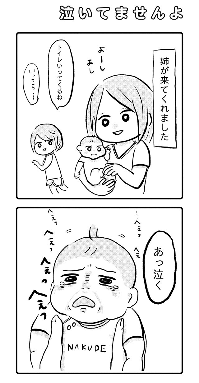 伯母に抱かれて大泣きのぐっちゃん。ママの顔を見た途端に…?/はじめて育児 ぐっちゃんパフェ