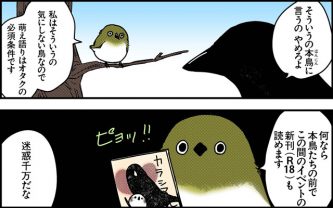 ツイッターで配信された、あざとかわいいシマエナガとクールなカラスさんの、ふふふと笑えて時にブラックな4コマコメディ! シマエナガとカラスの前に、メジロが登場! 怪…