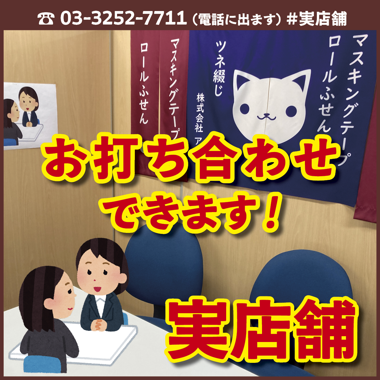 物理店舗電話番号 03-3252-7711(電話に出ます)