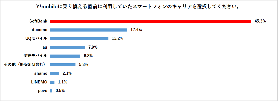 乗り換え前キャリアでは「ソフトバンク」が45.3%と最多。