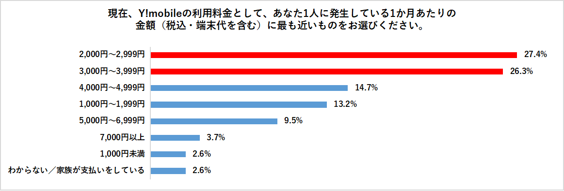 利用料金では、「2,000〜2,999円」(27.4%)と「3,000〜3,999円」(26.3%)が中心。