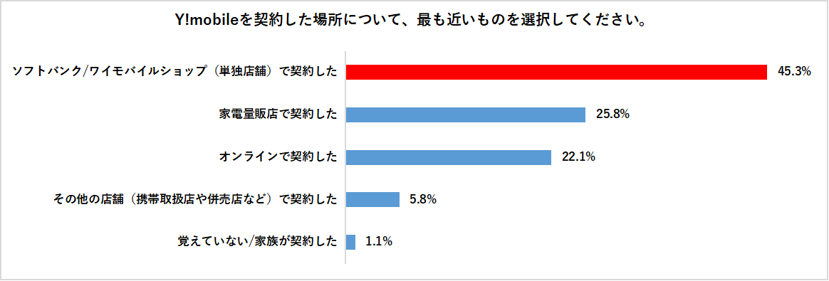 契約場所の最多は「ソフトバンク/ワイモバイルショップ」で45.3%。
