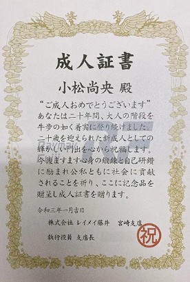 コロナ禍で成人式に参加できなかった後輩のために、先輩社員が贈った手づくりの賞状。上司や他部署の協力も得て完成したその一枚は、会社全体の思いやりと文化がにじむ感動作として審査員を魅了しました。