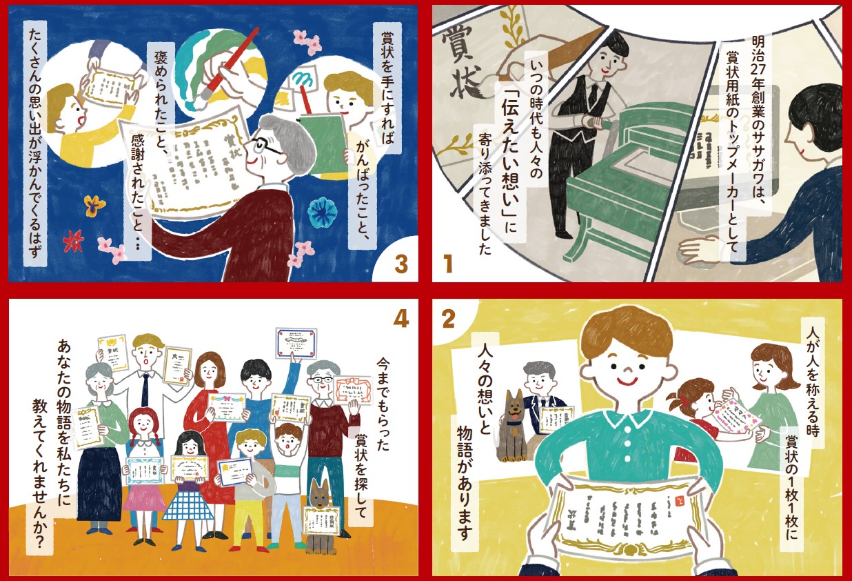 創業131年の紙製品メーカー株式会社ササガワが開催する、賞状を通じて「感謝」や「称賛」を思い出し、自己肯定感を高める文化発信プロジェクト。