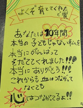 10歳の娘が母親に感謝を込めて贈った、血のつながりを超えた絆が表れた感動的な賞状。