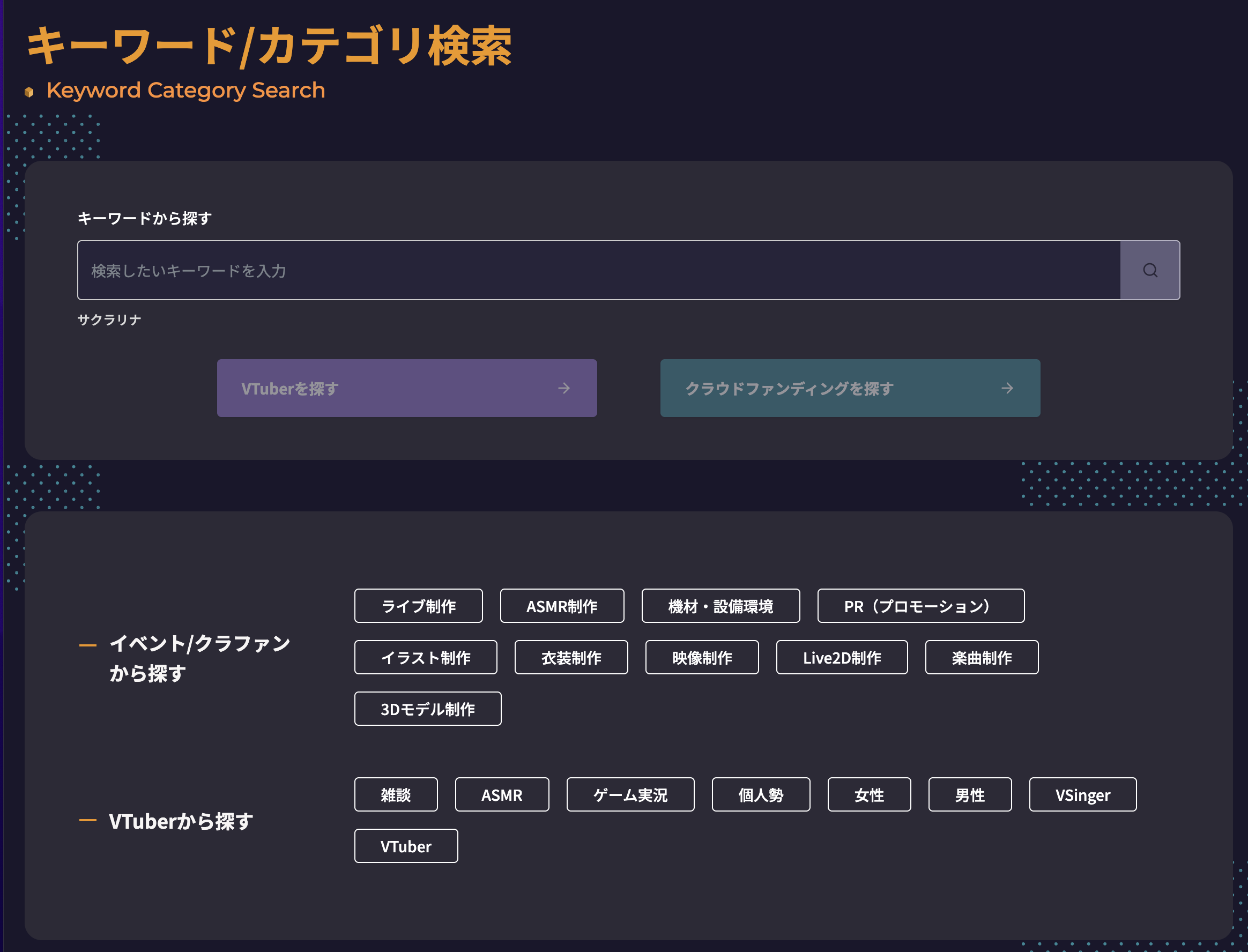・主な機能:VTuber特化型クラウドファンディングプラットフォーム、VTuberデータベース など