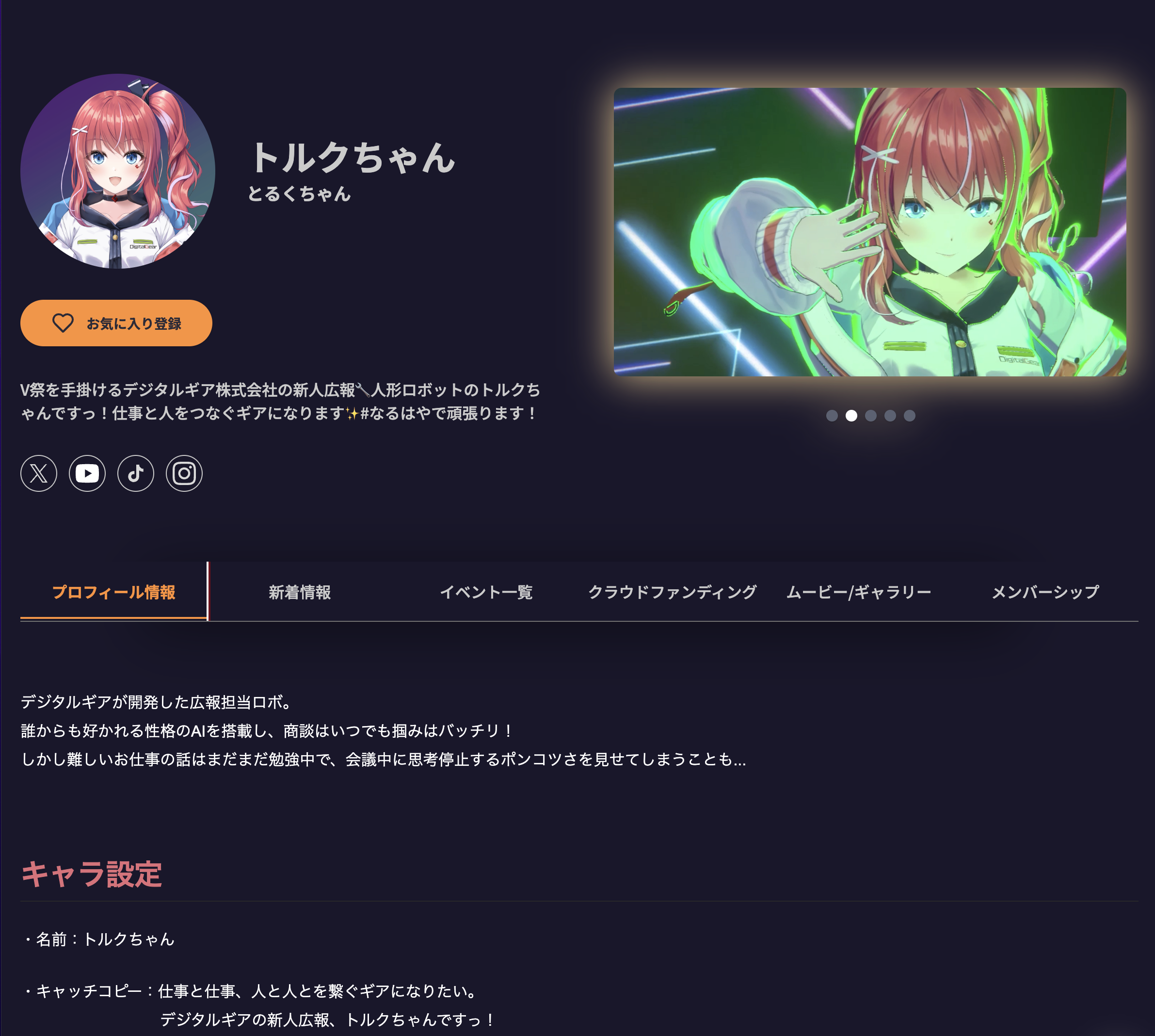 今回のアップデートでは、VTuberが自身の活動をより深く伝えられる詳細プロフィール機能を新たに追加。クラウドファンディングの実施有無を問わず、活動を知ってもらい、ファンや企業との新しい出会いを生み出す場所として機能を拡張しました。登録・ご利用は無料です。