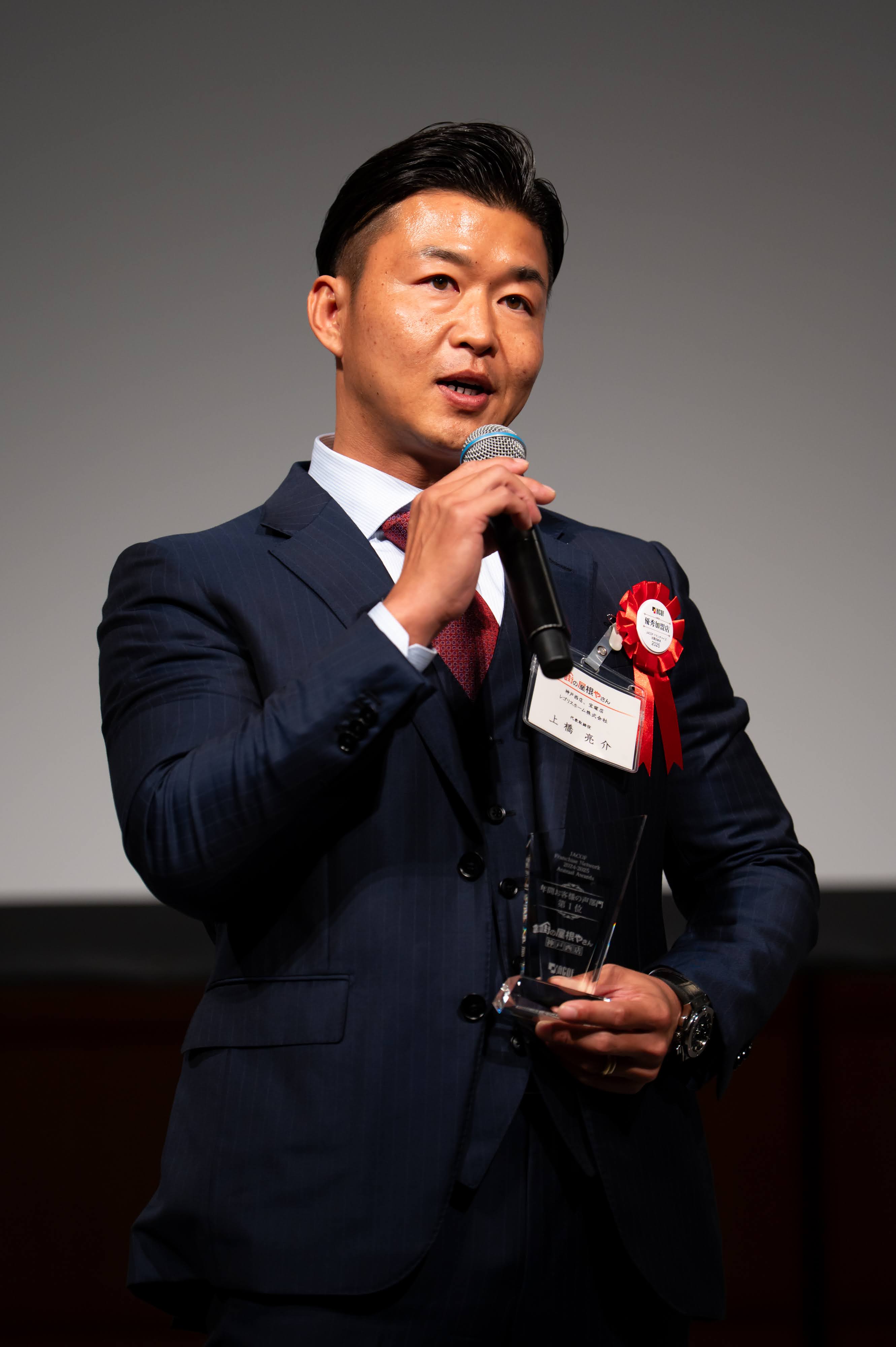 また、加盟店であるレゴリスホーム株式会社(街の屋根やさん神戸西店、街の屋根やさん宝塚店を運営)代表取締役 上橋亮介様にもご登壇いただきました。