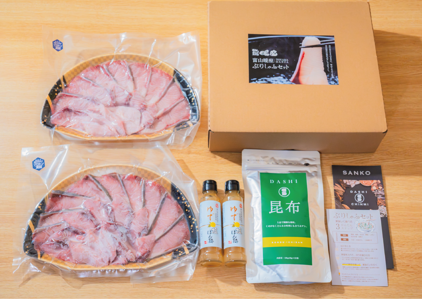 氷見の寒ぶりは、全国的にも人気の高い“富山のブランド魚”として知られ、脂がのった深い旨みと上質な食感が特徴です。暖座の「ぶりしゃぶセット」は、寒ぶりの魅力を最大限に引き出すため、相性の良い「昆布だし(ダシの三幸)」と「ゆず塩ぽん酢」を同梱し、届いてすぐに本格的なぶりしゃぶを楽しめる“お取り寄せセット”として仕上げています。