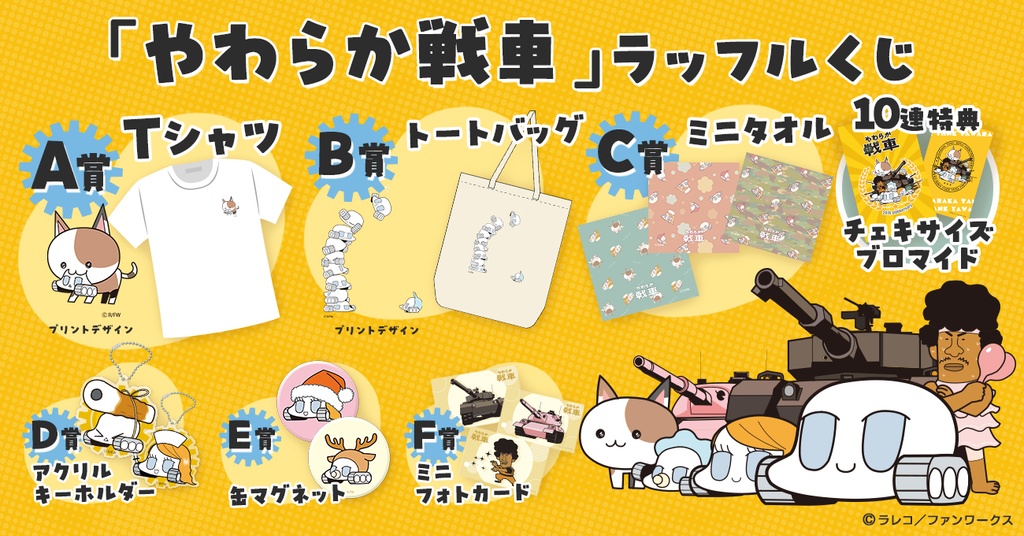 「やわらか戦車」ラッフルくじが発売中!〜キャラクターイラストを使用した限定景品が多数登場〜