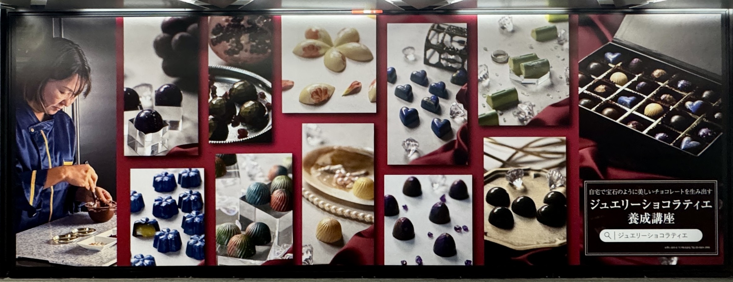 オンライン講座を通じて「人生を豊かにする学び」を提供しているラフ株式会社(代表:永渕成記、本社:東京都渋谷区恵比寿)は、2025年12月15日(月)〜21日(日)の期間、東京メトロ銀座駅構内にて「ジュエリーショコラティエ養成講座」の世界観を紹介する広告掲出を実施いたします。 掲出されるのは、本講座を監修するショコラティエ・坂田先生が手がけた、まさしく「食べる宝石」の美しさをまとったチョコレートアートの数々。 光を受けてきらめくその姿は、ただ甘いだけでなく、冬の街にそっと心のあたたかさを届けてくれます。 慌ただしい年の瀬、通勤通学やお買い物の合間に—— ふと足を止めたその一瞬が、やさしい気持ちを思い出すきっかけになりますように。