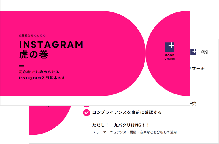 株式会社グッドクロス(本社:東京都品川区 代表取締役:原田大輔)は自社のSNS発信により得た基本的な運用のノウハウをまとめた「インスタグラム虎の巻」を、令和7年12月18日(木)より自社ウェブサイトにて公開、無料でのダウンロードを開始いたします。 広報・SNS運用の経験がない方でも、今日から迷わずInstagramを運用できるようになる必読の資料を無料で手に入れていただけます。