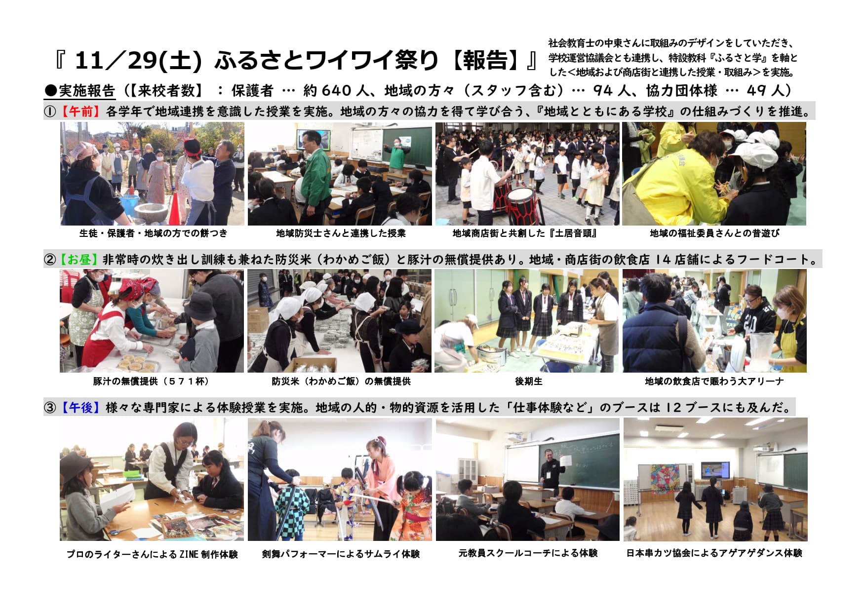 * 実施場所: 守口さつき学園 内(ワイワイ参観日 午後の地域連携イベント枠)