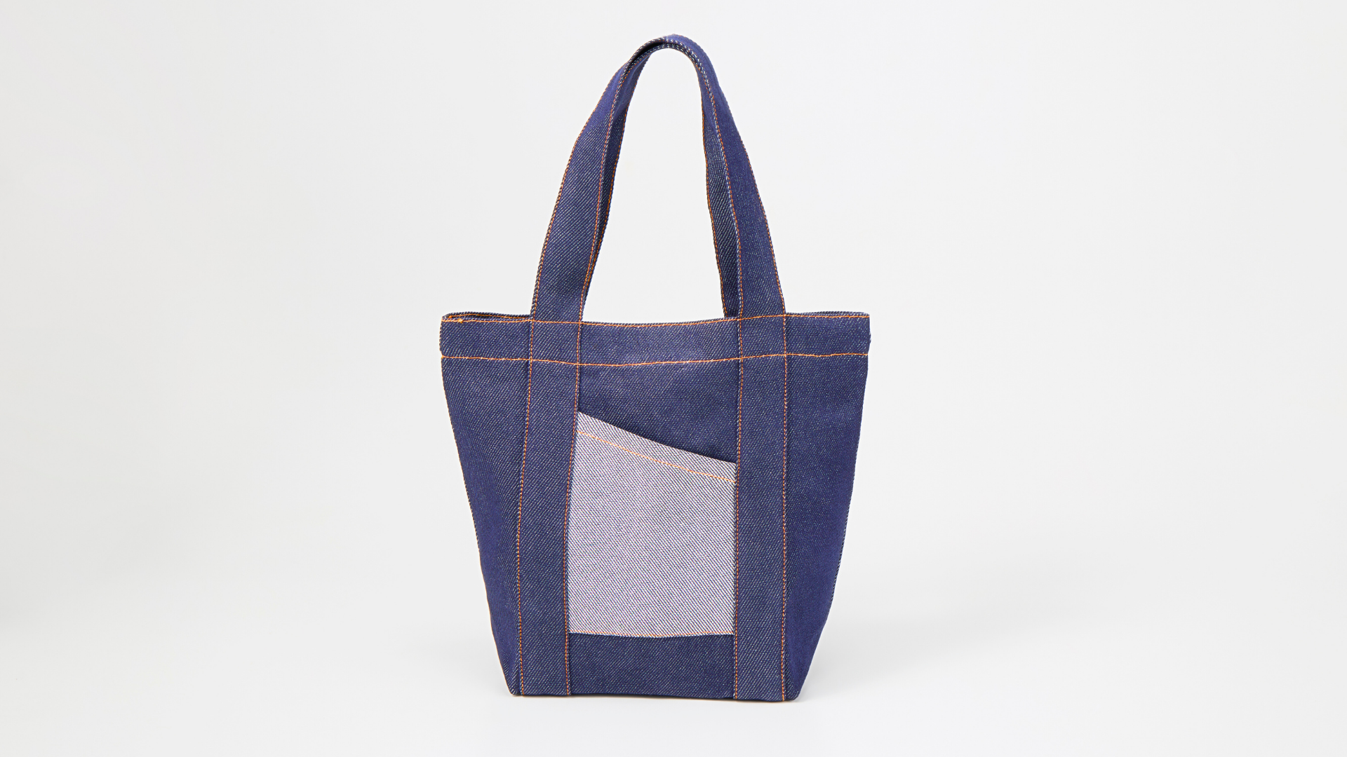 さらに、持ち手が底まで付いているトートバッグの形状を活かし、外ポケットを付けることにしました。生活に欠かせないスマートフォンやミニウォレットなど、カバンの中で迷子になりがちな大切なアイテムを取り出しやすい設計にしています。和紙デニムの裏地を表にしたポケット--前述したタグのことで、商品化する際のコストとその価値について学びを得た私たちが、「文化生らしさ」を表現するために捻り出したアイディアでした。