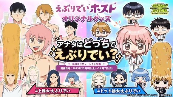今回は、『アナタはどっちで“えぶりでい?”』をコンセプトとして、「上裸デザイン」と「ドット絵デザイン」の2つのデザインで「えぶりでいホスト」のキャラクターたちの魅力を…