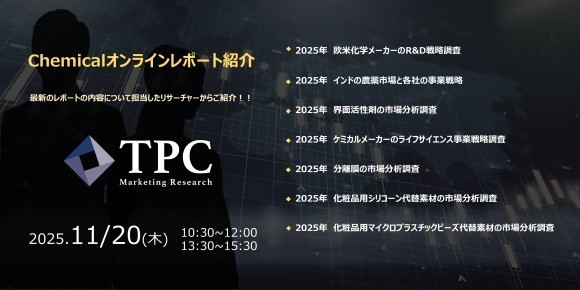 リサ・リューション事業を展開するTPCマーケティングリサーチ株式会社(代表取締役社長:松本 竜馬)は、2025年11月20日にChemicalオンラインレポート紹介を開催いたします。「オン…