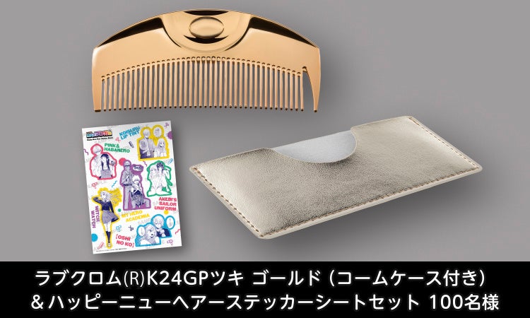 ■ヘアコーム賞:ラブクロム (R)K24GPツキ ゴールド(コームケース付き)&ハッピーニューヘアーステッカーシートセット <100名>