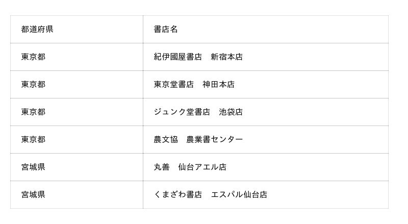 ※今後、販売いただける書店が増える可能性があります。