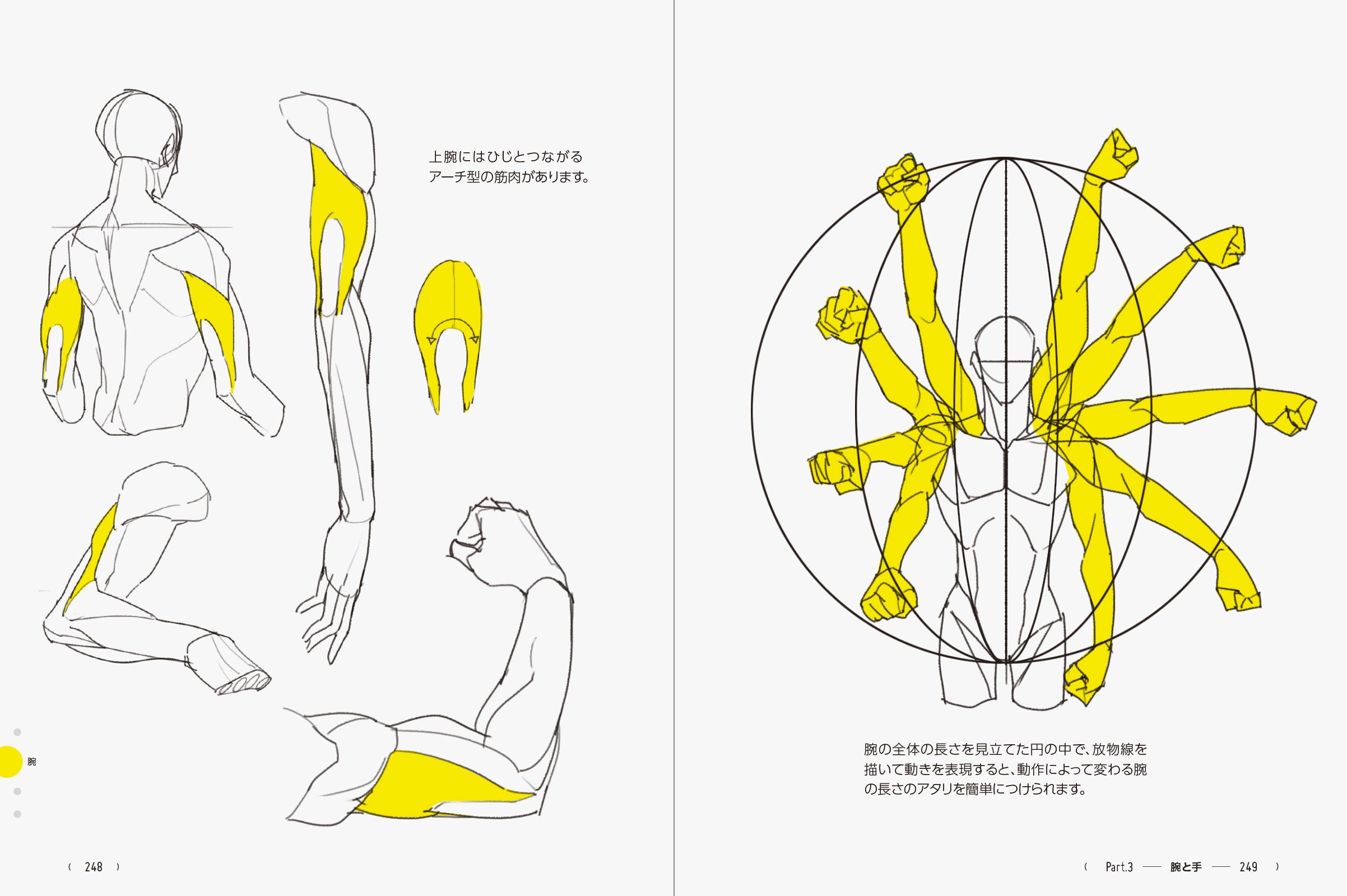 腕全体、筋肉のつき方や可動域